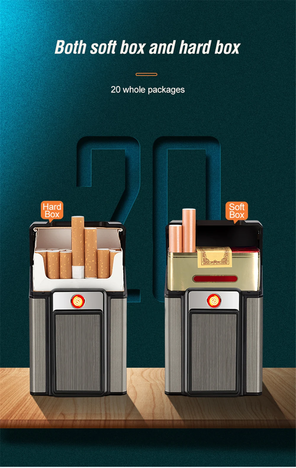 Чехол для сигарет USB зарядка Зажигалка металлическая ветрозащитная Зажигалка для сигарет 20 шт. контейнер для хранения сигарет аксессуары для курения