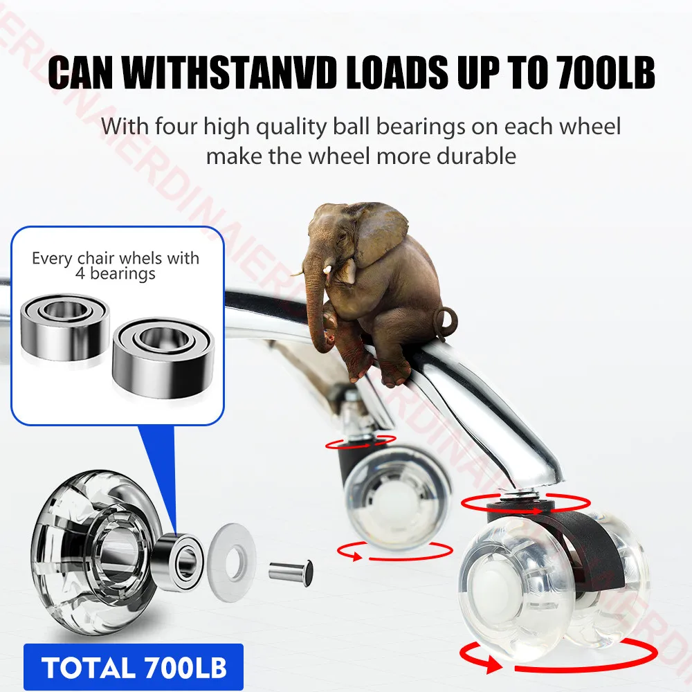 Наши колеса стула NAIERDI изготовлены из новейшей промышленной стали, прочного полиуретана и прецизионных подшипников.