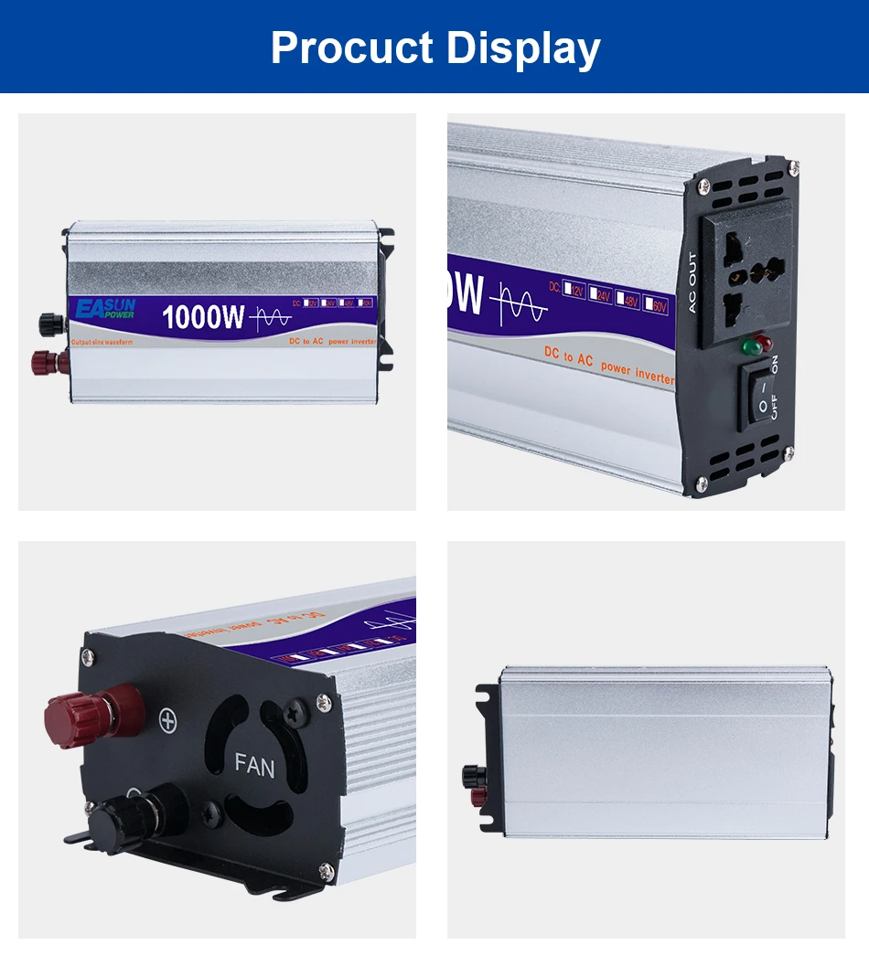 1000W Pure Sine Wave Inverter DC 12V/ 24V/ 48V To 220V Power Car Inverter Converte WITH LED Display