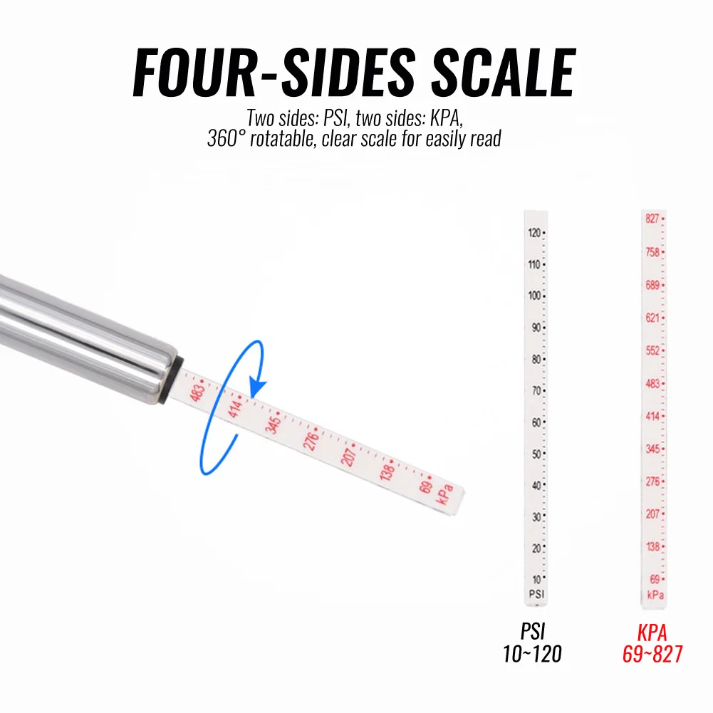 * Обеспечивает быстрый, простой метод проверки давления в шинах.