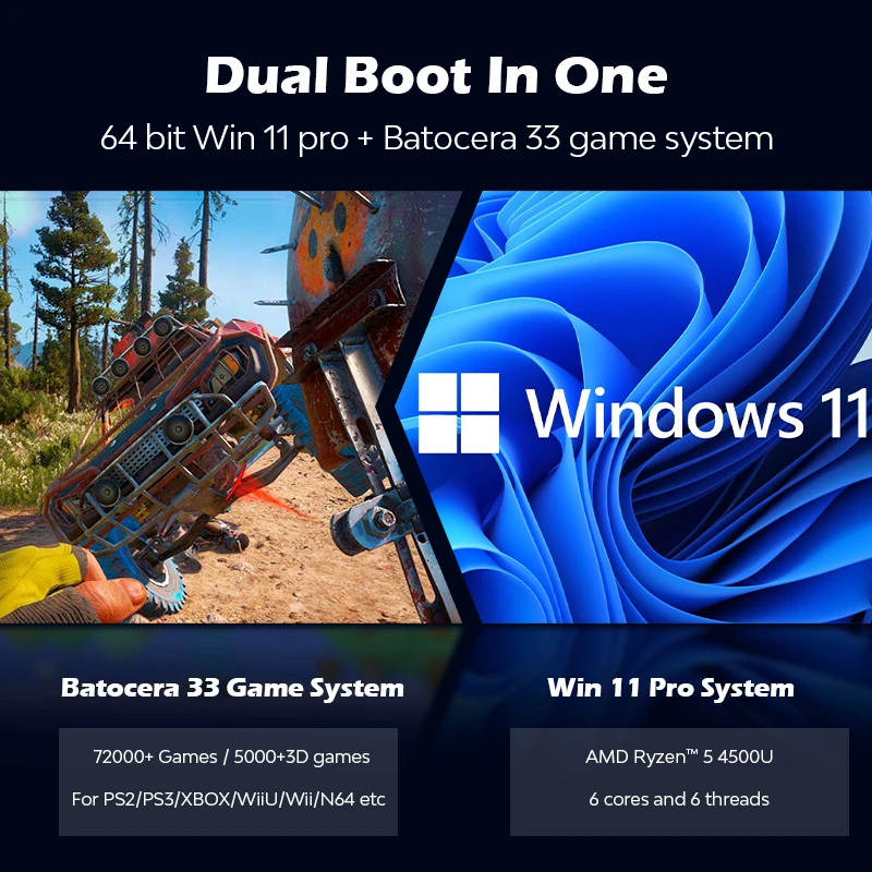 ④Dual boot in one:64 bit Win 11 pro + Batocera 33 игровая система