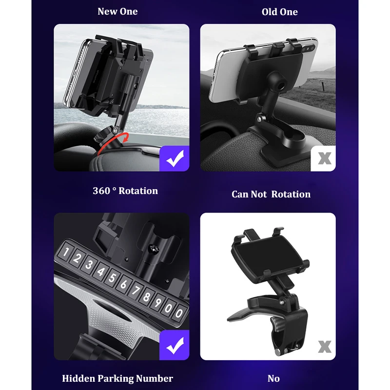 1200 градусов Автомобильный держатель для телефона приборная панель мобильный телефон подставки зеркало заднего вида в автомобиле GPS навигационное крепление регулируемый кронштейн зажим