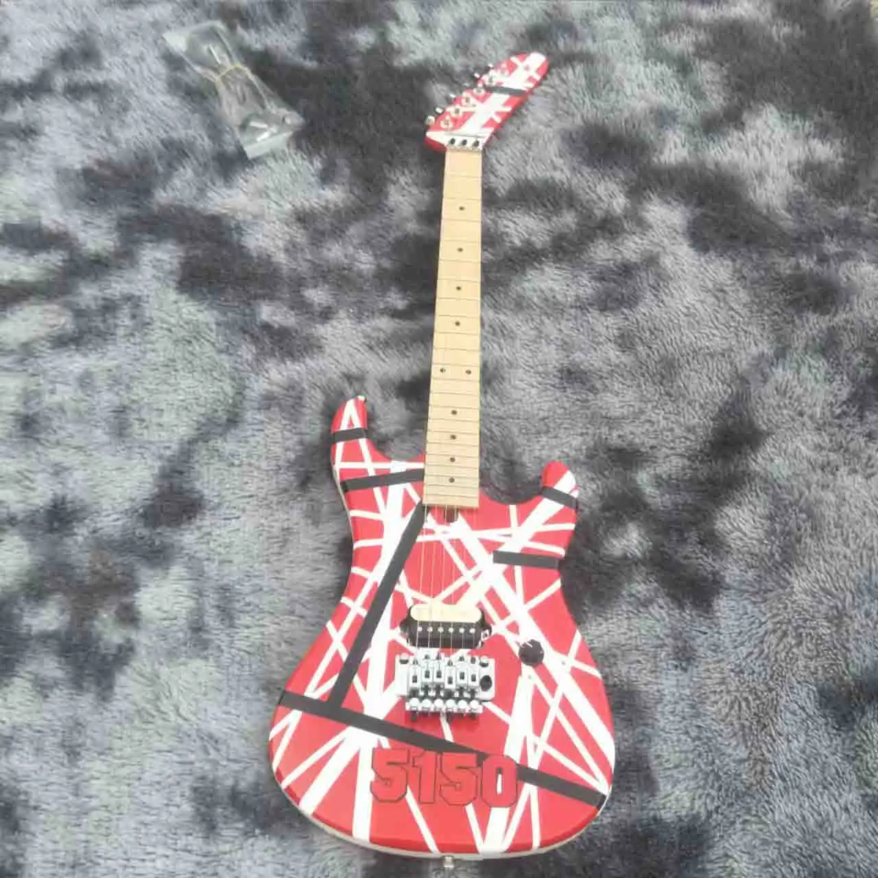 На заказ Eddie Edward Van Halen Kramer 5150 красная электрогитара в черно-белую полоску