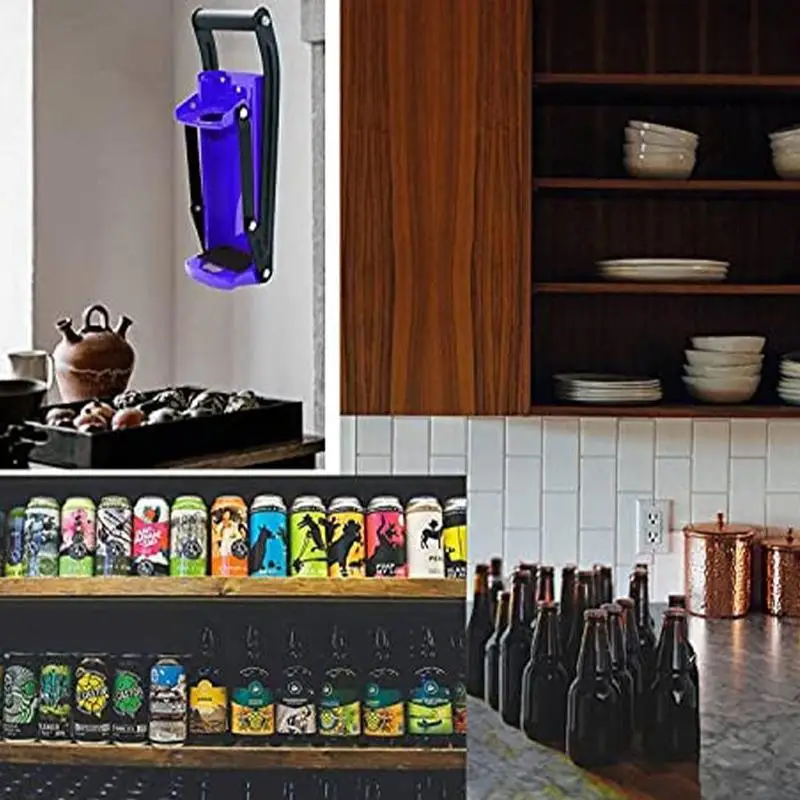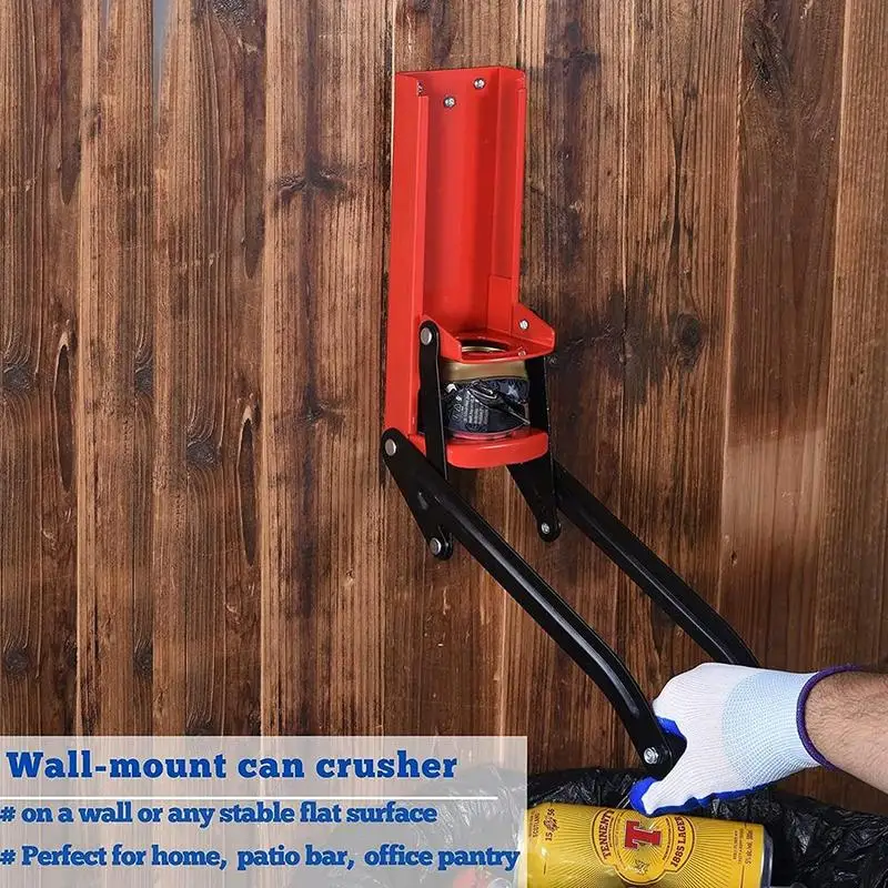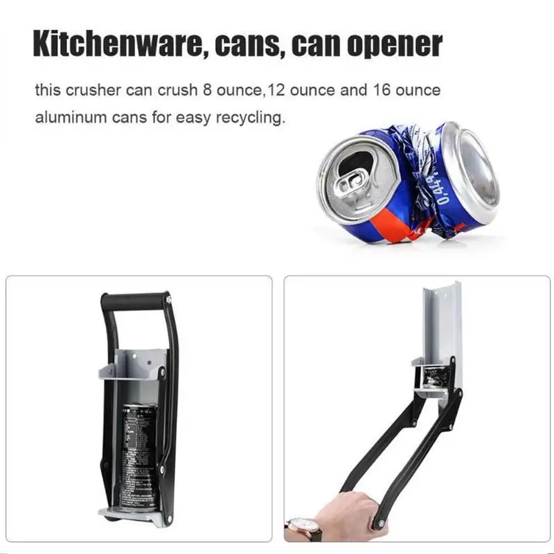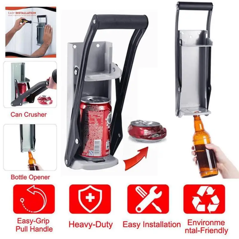 Дробилка для резервуара изготовлена из сверхпрочной стали с большой ручкой типа подушки и встроенным Открывателем для бутылок. Он может быть установлен вертикально с 4 прикрепленными деревянными винтами, чтобы обеспечить вам максимальное давление и сделать его легче сломать. Компресс перерабатываемых изделий на приблизительно 1 дюйм штук