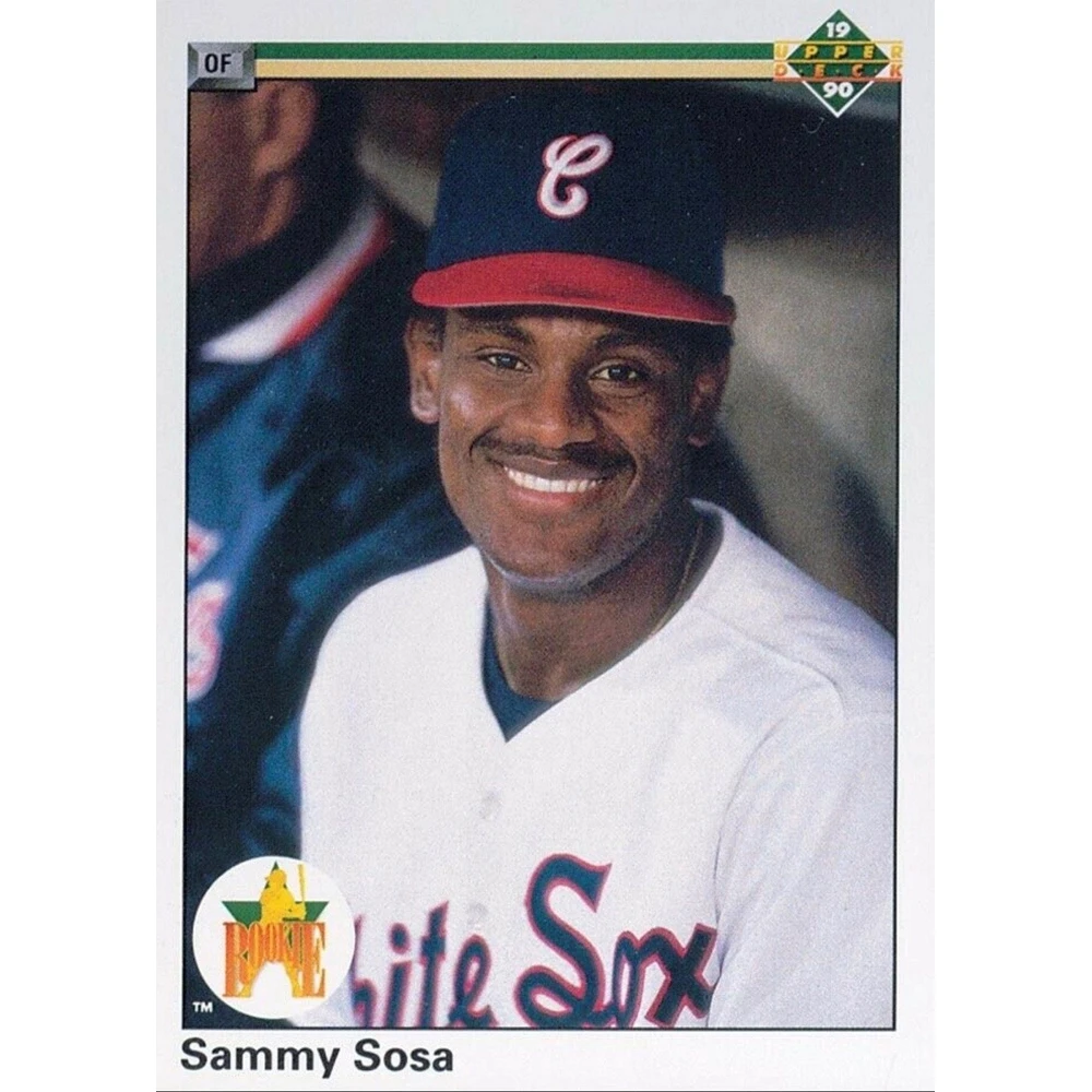 Набор 1990 Upper Deck содержит 800 карт, выпущенных двумя сериями: Low Series (1-700) и High Series (701-800). Пакеты High Series состояли из карт с низкими и высокими номерами. Лицевая сторона карты не глянцевая, с цветной фотографией игрока с белыми полями. На рубашках карт есть цветная фотография игрока, недавняя статистика игроков и голография с защитой от подделок. Карточки печатаются на тонком белом картоне. Карты командного контрольного списка с оригинальными изображениями Вернона Уэллса-младшего и карты звездных новичков разбросаны по всему набору. Карточки с последовательной нумерацией, кратной 100, являются контрольными списками. Среди новичков - Хуан Гонсалес, Дэвид Джастис, Рэй Ланкфорд, Дин Палмер, Сэмми Соса и Ларри Уокер. Любопытно, что в Upper Deck не было карты новичка Фрэнка Томаса.