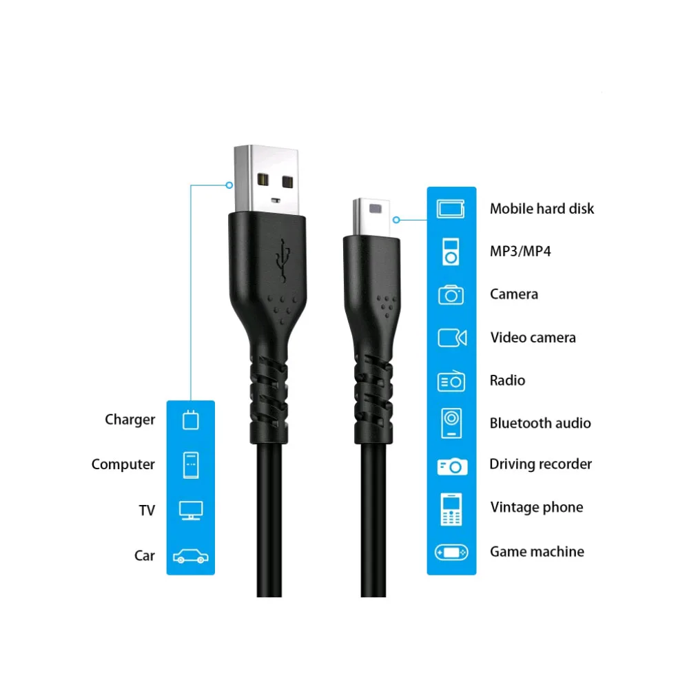 【Широкая Совместимость 】: мини USB кабель работает для контроллера PS3, Astro A40/50, MP3-плееров, HTC, цифровых камер, таких как Canon, Sat навигация, Garmin GPS приемник, игровой контроллер, микрофон с зумом, dash Cam и т. д., и других устройств с мини B 5-контактный разъем.