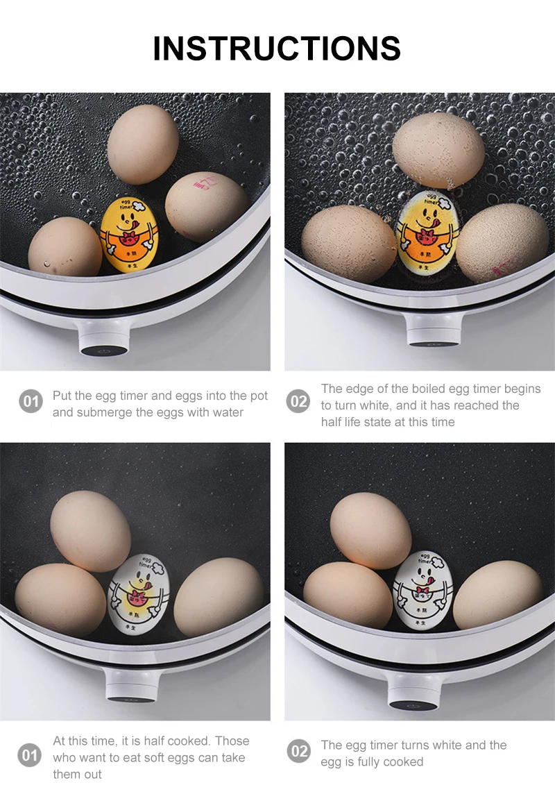 Gewoon zet het ei timer met uw ei in het water, we kunnen weten de conditie van uw ei als de timer kleur verandert, ei timer donkerder als eieren koken.