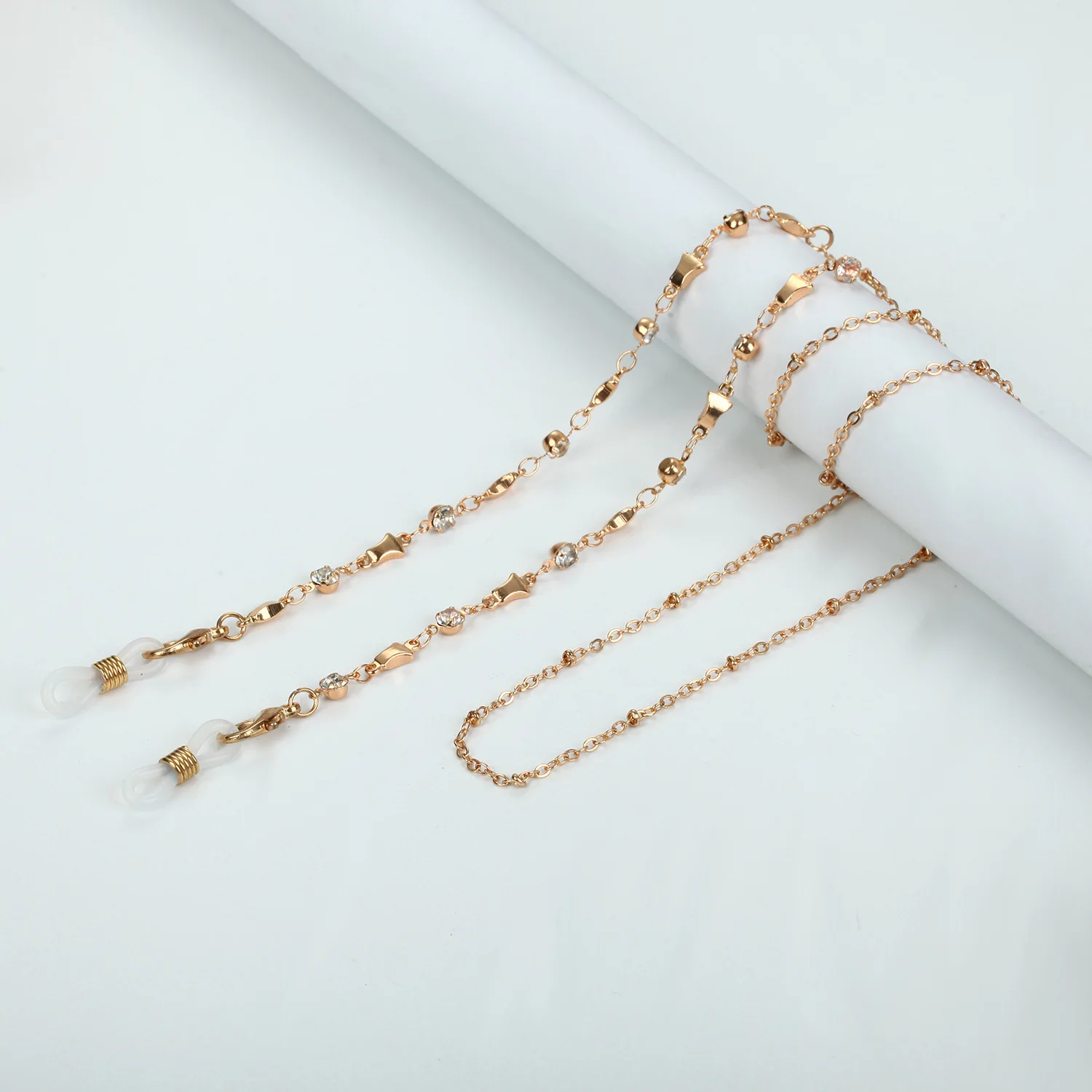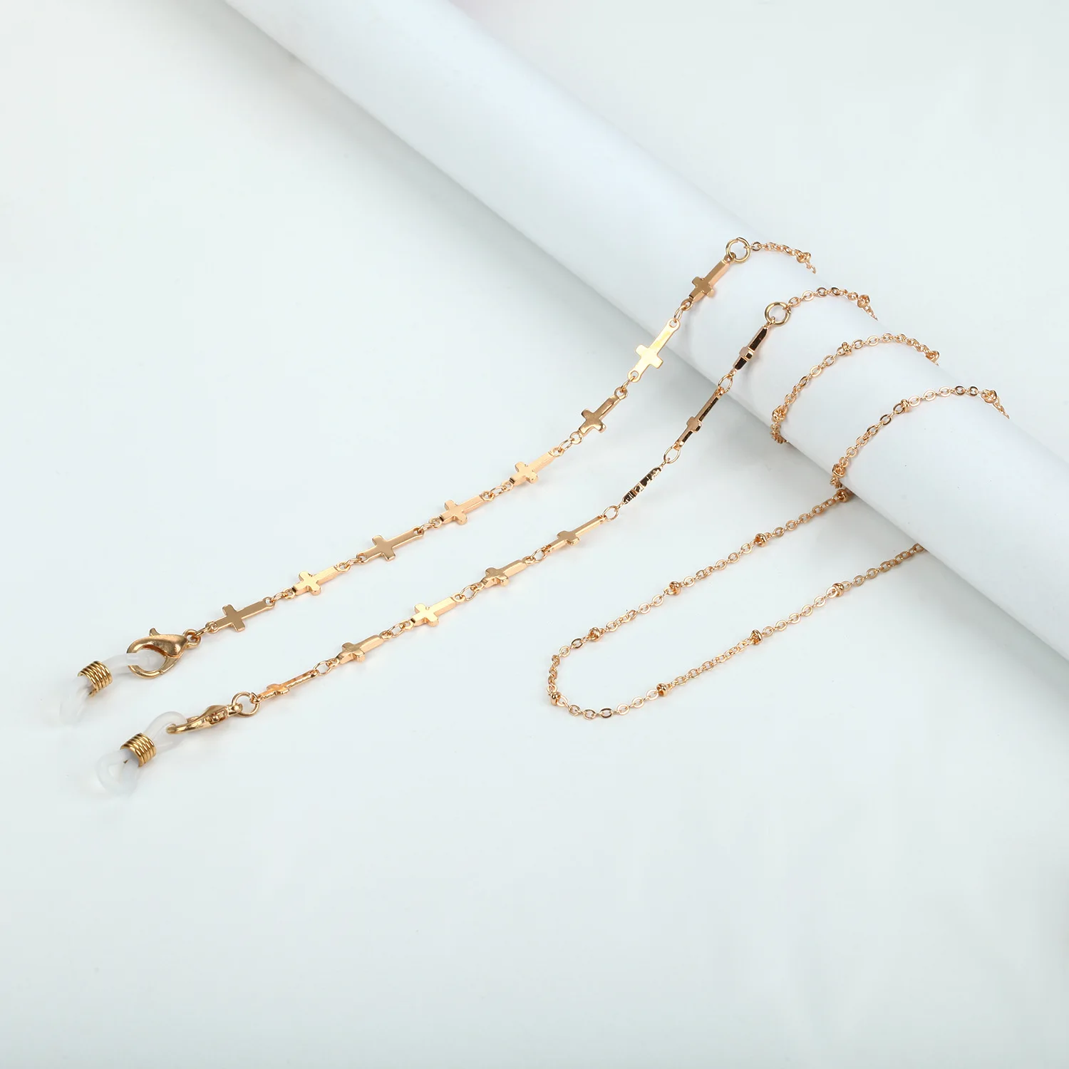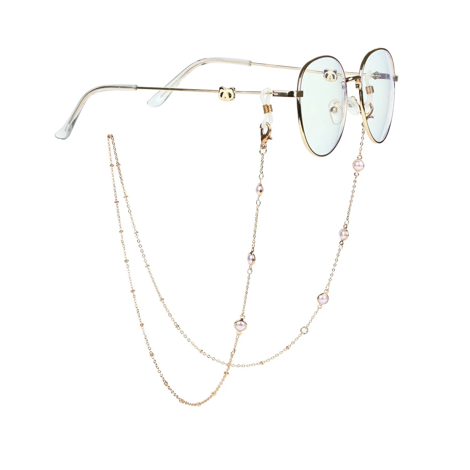 76CM Gold Glasses Chain for Women Pearl Cross Crystal Geometric Sunglasses Mask Chains Anti-skid Hang Neck Spectacle Cord Rope