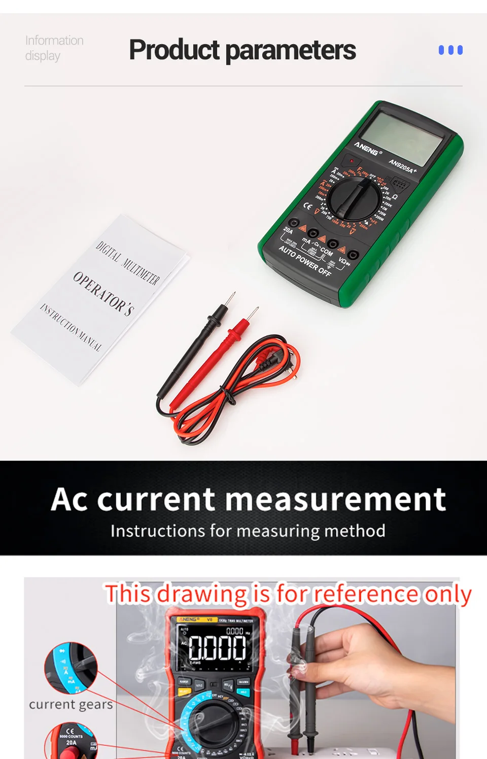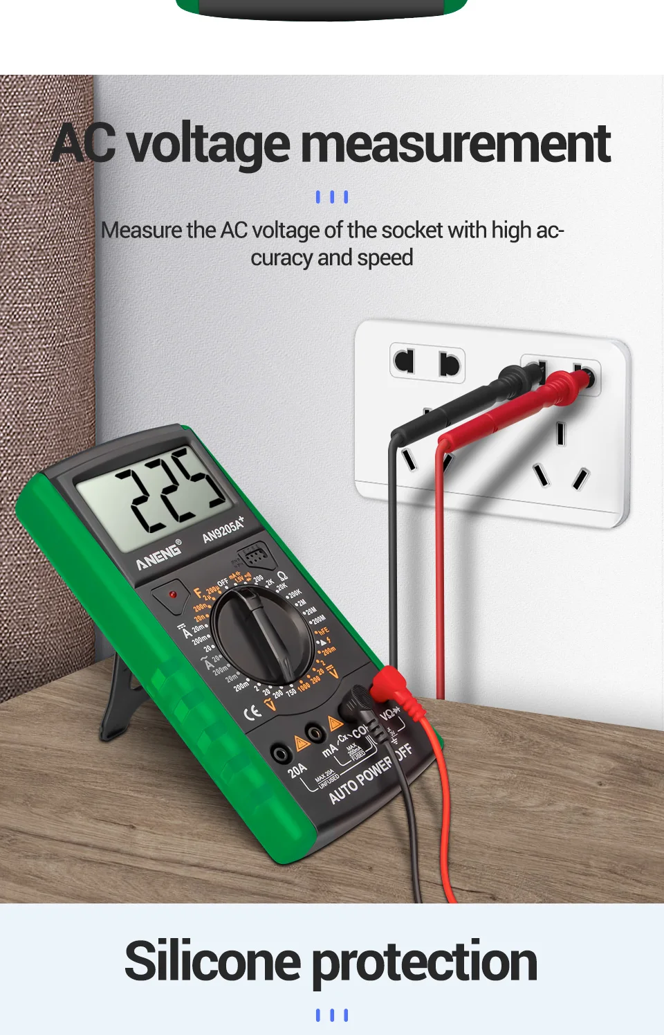 Напряжение постоянного тока: 200mV-2V-20V-200V-1000V ± 3%