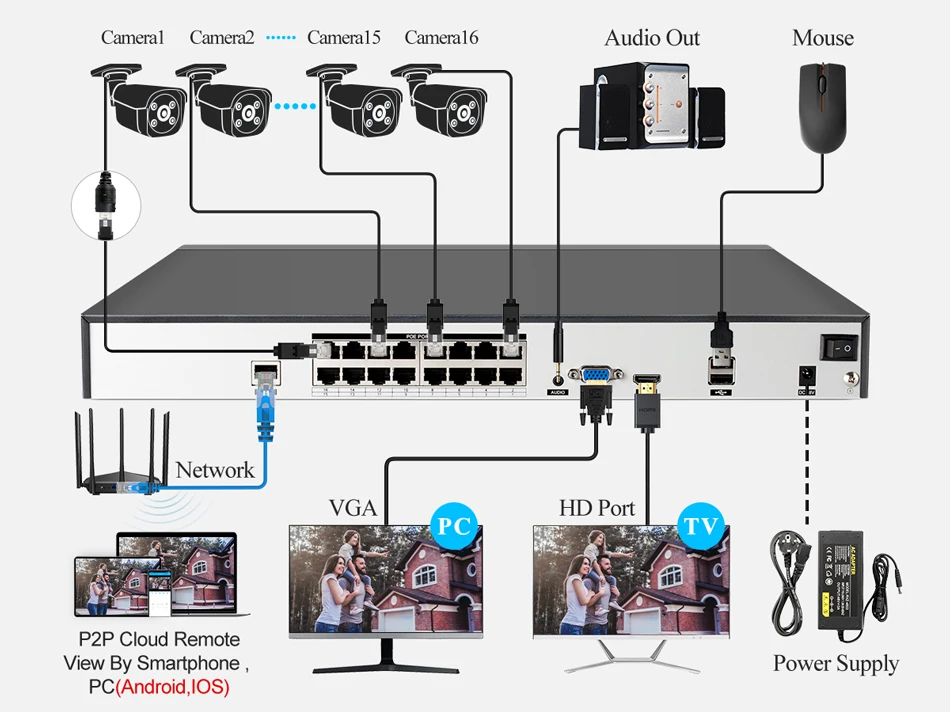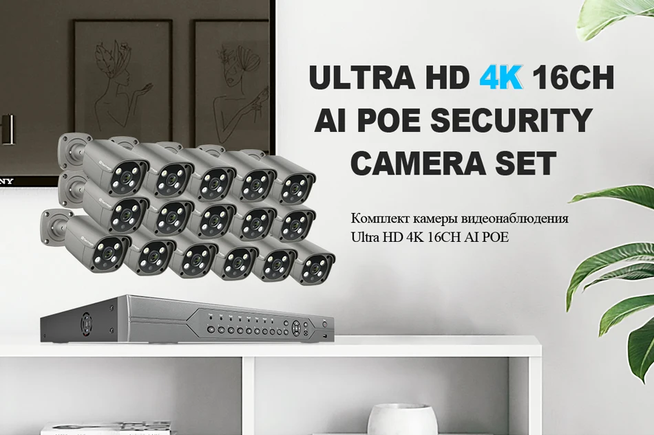 16CH POE NVR + 8 камер/16CH POE NVR + 16 камер на выбор.