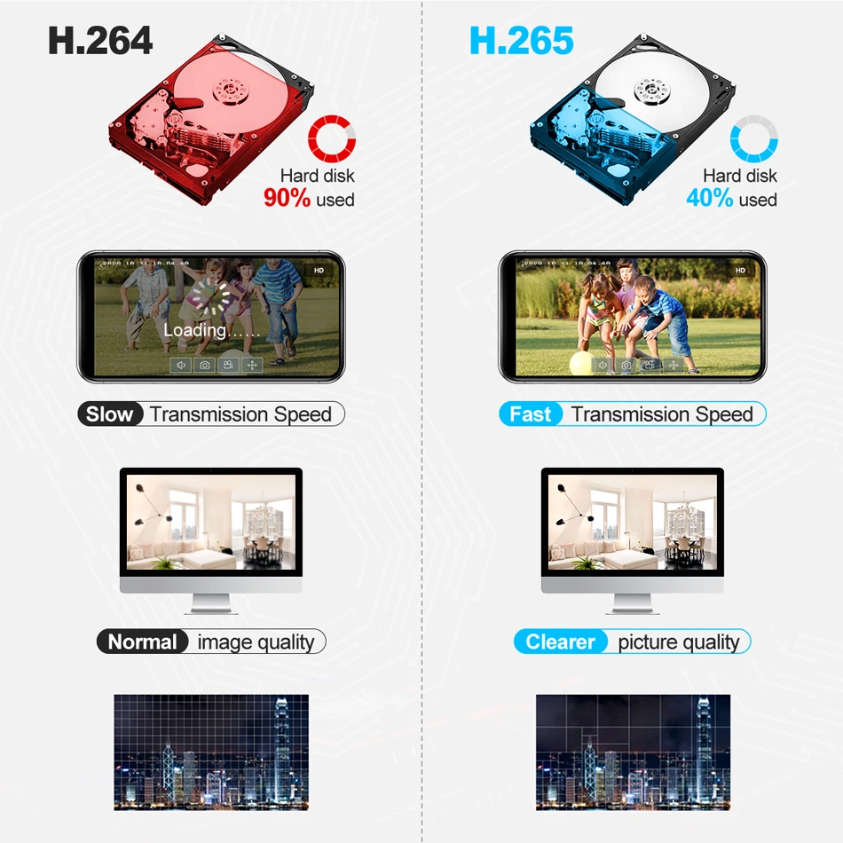 H.265 более четкий, Hd разрешение предлагает вам лучшее качество изображения в более низкой скорости.