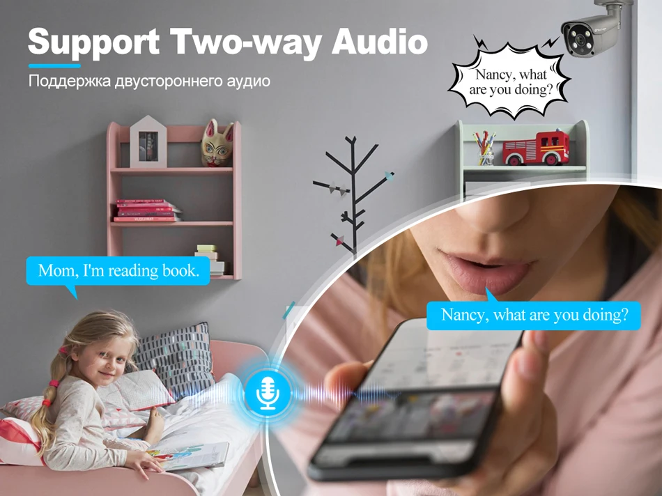 * Все камеры встроены в микрофон и динамик, поддержка двусторонней аудиозаписи.