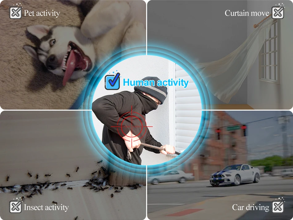 * Обнаружение человека: только Обнаружено движение человека, уменьшает Ложные сообщения тревоги.