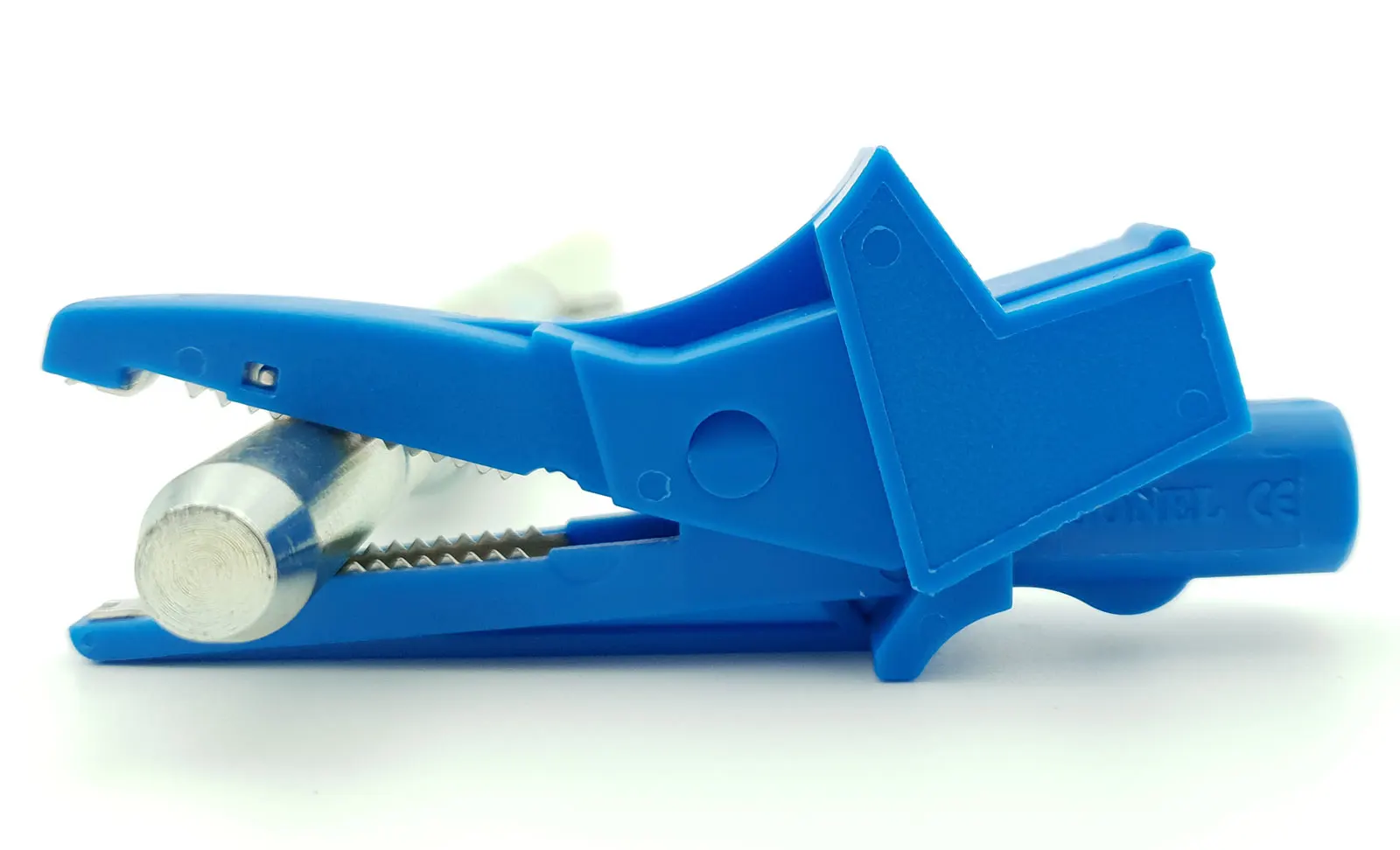 Зажим типа "Крокодил" обеспечивает надежное соединение при работе. Измерительные провода подключаются к зажимам с помощью универсального разъёма типа "банан" диаметром 4 мм. Благодаря этому, их использование не ограничено одним производителем. Зажимы выпускаются различных цветов, что позволяет обозначить измерительную цепь. Имеют полностью изолированный корпус и надёжный пружинный контакт, что предотвращает нежелательное отключение и возможное короткое замыкание. Данные зажимы применяются в электроустановках до 1000 Вольт, с максимальным током до 20 Ампер. Габариты 91 х 37 х 23 мм.