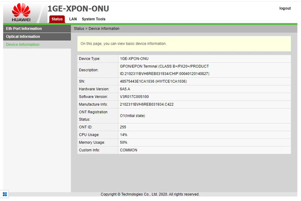 Оригинальная б/у вторая рука Huawei HG8310M XPON двойной режим (EPON & GPON) FTTH ONU ONT модем 1GE LAN английская прошивка без коробки и источника питания
