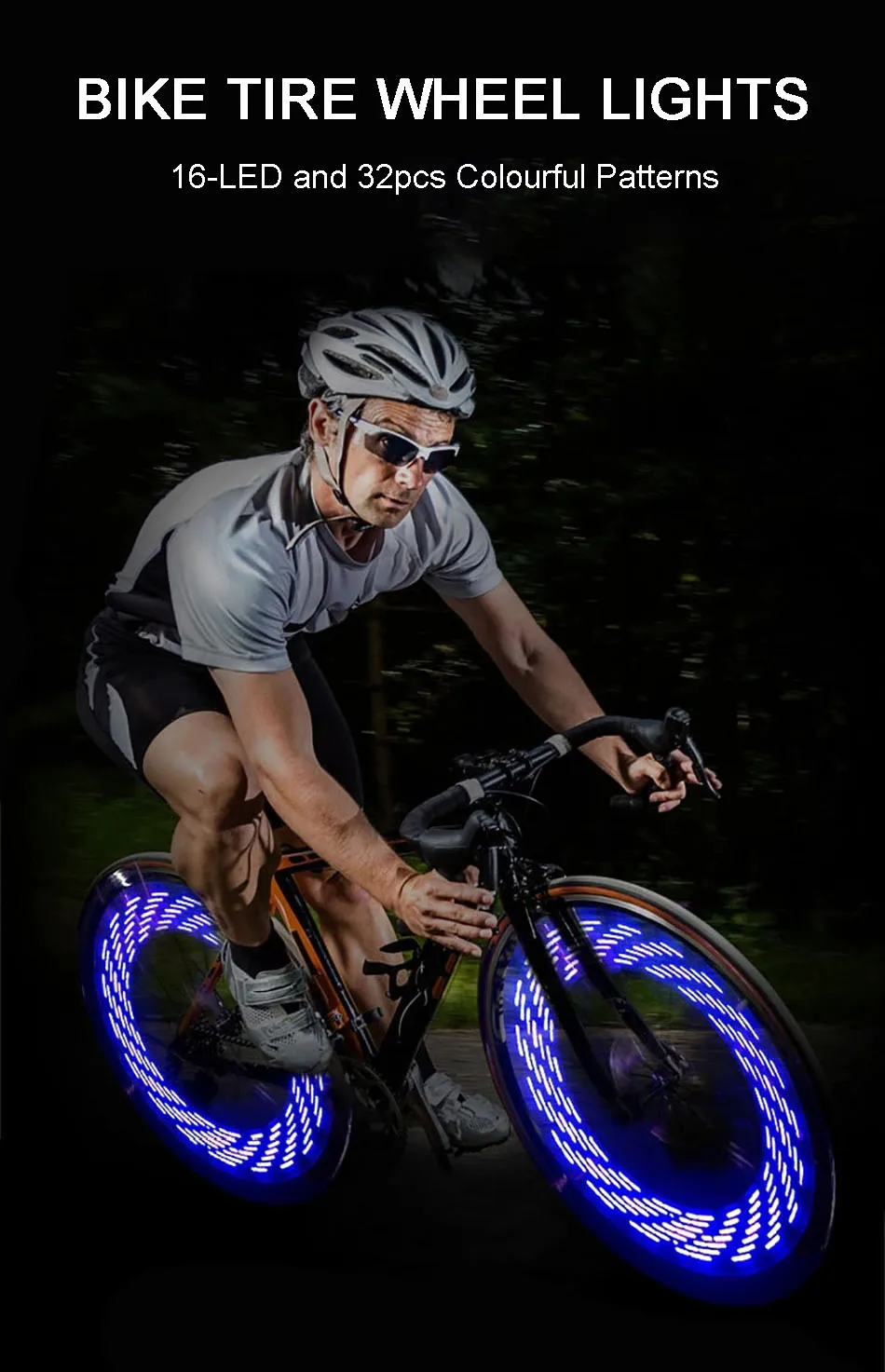 Спицевые огни для велосипедных колес изготовлены из 16 светодиодов RGB, 32 разных узора изменяются. Эта крутая подсветка для велосипедного колеса очень яркая, что позволит вам видеть всех ангелов, так что ваша Ночная езда на велосипеде будет более безопасной и веселой! Вы больше не "Invisible" велосипедист на дороге
