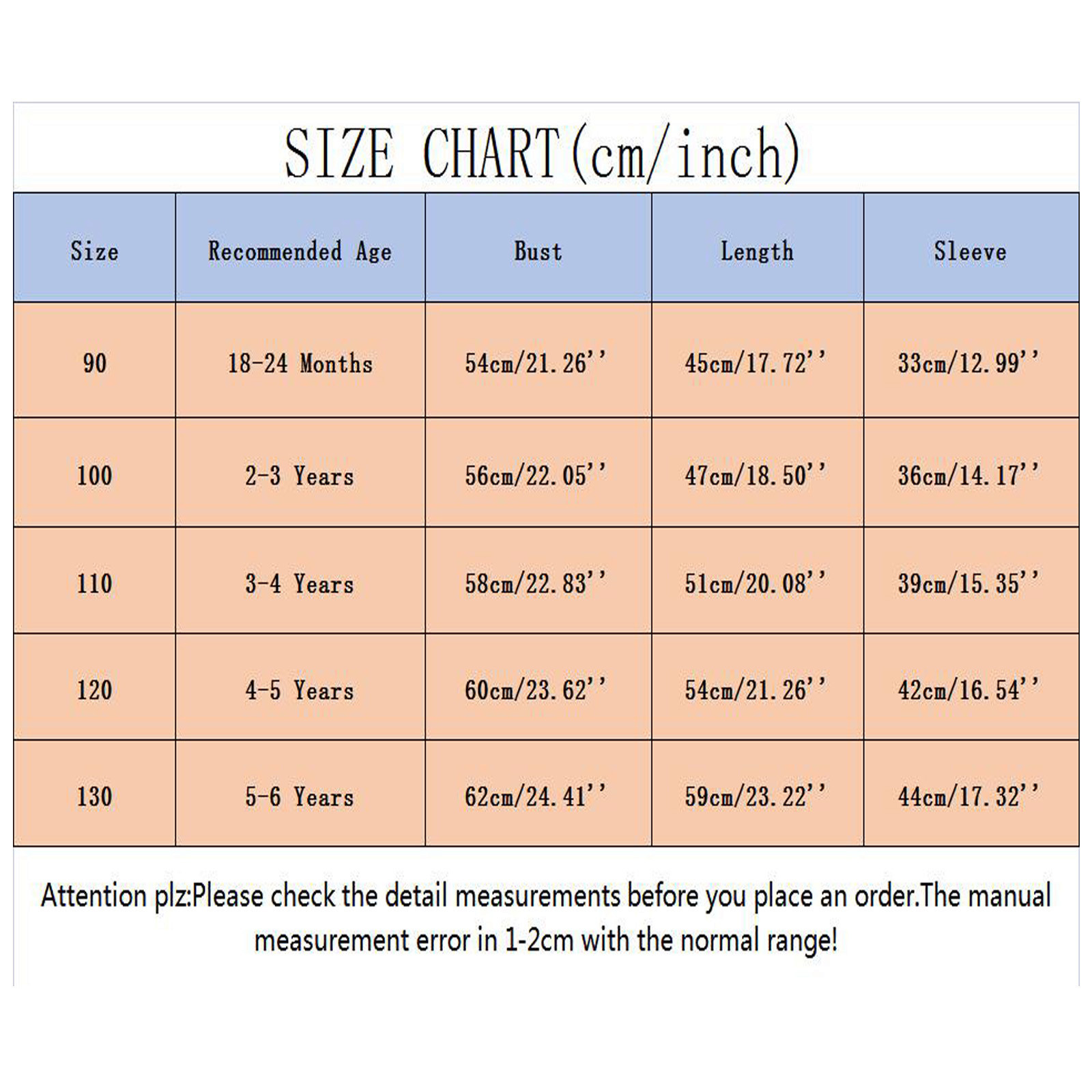 Размеры Рекомендуемый возраст Бюст Длина Рукав 90 18-24 месяцев 54 см/21,26'' 45 см/17,72'' 33 см/12,99'' 100 От 2 до 3 лет 56 см/22,05'' 47 см/18,50'' 36 см/14,17'' 110 От 3 до 4 лет 58 см/22,83'' 51 см/20,08'' 39 см/15,35'' 120 От 4 до 5 лет 60 см/23,62'' 54 см/21,26'' 42 см/16,54'' 130 От 5 до 6 лет 62 см/24,41'' 59 см/23,22'' 44 см/17,32''