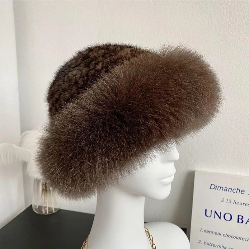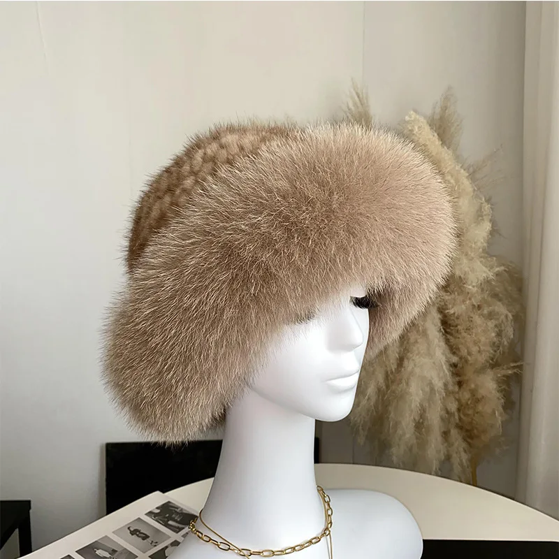 Роскошная шапка-бомбер из натурального меха норки для девочек, зимняя Пушистая Шапка из натурального Лисьего меха высокого качества, Женская эластичная теплая шапка с натуральным мехом, подарки