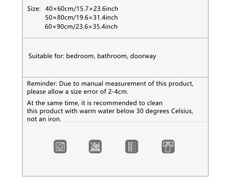 1. Материал: полиэфирная ткань, удобная и мягкая, быстро адсорбирующая Капля воды, она может поглощать 3 раза собственный объем воды, защищает пол от влаги и быстро испаряется, дает вам здоровую и комфортную домашнюю среду.
