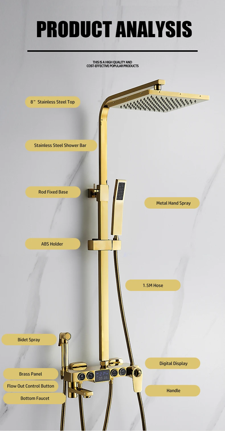 Горячий Холодный Цифровой Золотой душевой кран Набор для ванной термостатический смеситель для дождевой системы для ванны спа душ кран современный золотой Grifos