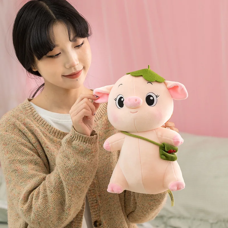 Милая мягкая розовая плюшевая игрушка в виде поросенка с бантиком, высокое качество, кепка в виде листа лотоса, сумка через плечо, украшение в виде Свинки, милые плюшевые игрушки для детей на день рождения, Рождество