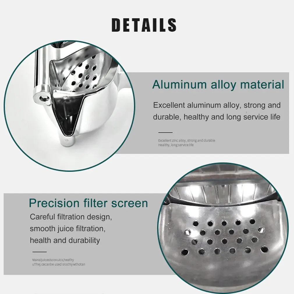 3. Высококачественный материал: мы разработали нашу ручную соковыжималку с алюминиевым сплавом, который является прочным материалом, обеспечивая длительное использование. Сплав устойчив к коррозии и пищевой, поэтому вы можете сделать соки для детей без беспокойства.