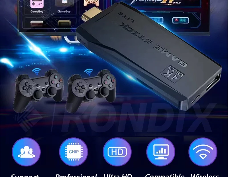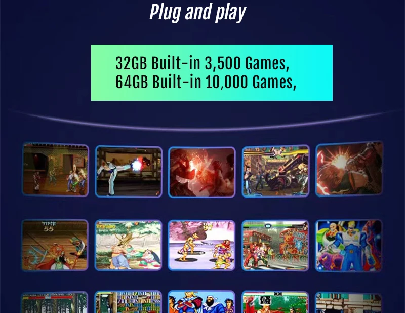 Поддержка 25 языков. Новейшая беспроводная ТВ-игровая консоль с картой памяти 64G, встроенная более чем 10000 игр, возможность поиска, коллекционирования, сохранения процесса и поддержка загрузки ваших любимых игр;
