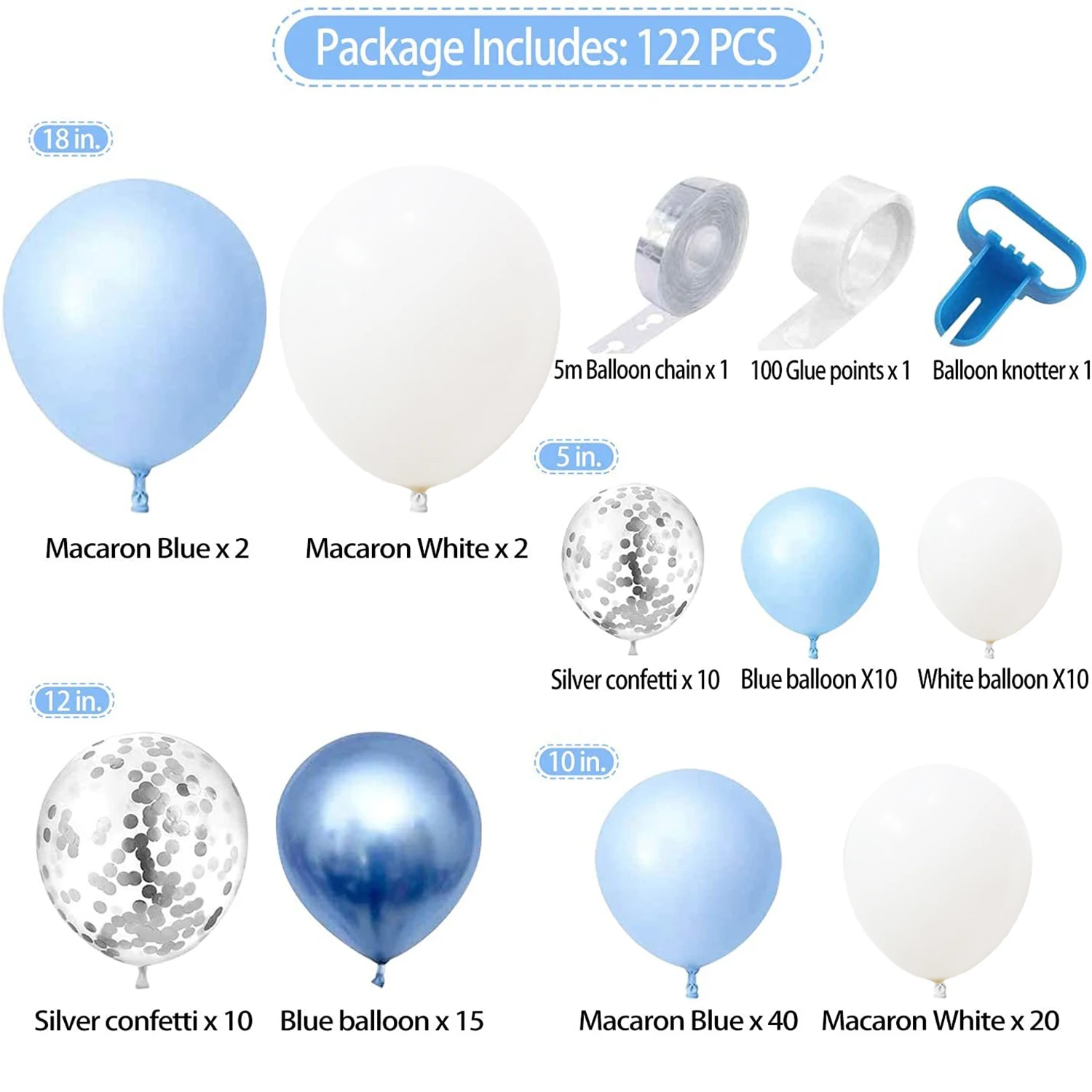 122 шт. комплект гирлянды Macaron металлик синий белый и серебряный воздушный шар "Конфетти" для дня рождения ребенка душ свадебное украшение