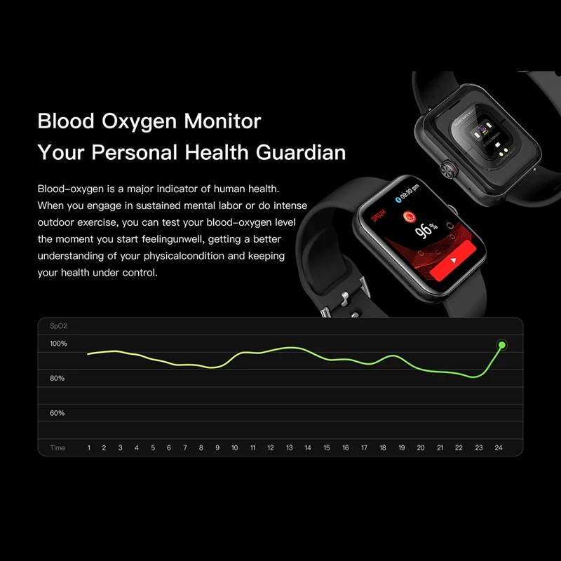 Функции: непрерывный мониторинг сердечного ритма, подсчет шагов, пробег, мониторинг сна, режим упражнений, умное напоминание (напоминание о звонках, SMS напоминание, QQ, WeChat, электронная почта, будильник, сидячий), поднятие дисплея руки, обновление OTA, погода, управление музыкой, секундомер, время, управление камерой, кровяное давление, Bluetooth Вызов, кислород крови, HRV