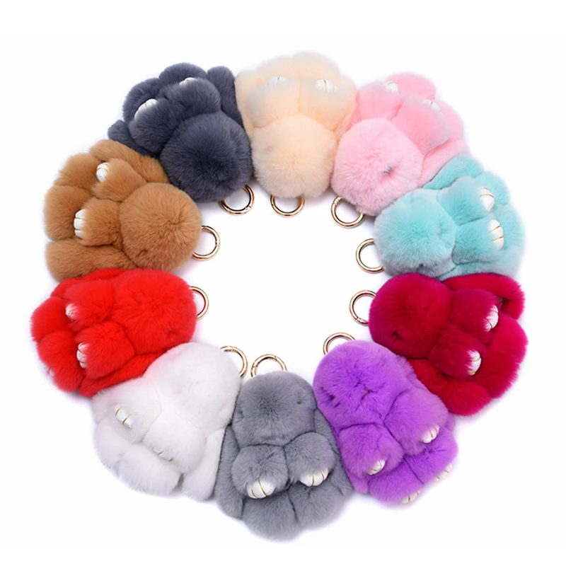 Мини кролик брелок для ключей мех кролика помпон брелки женские сумки декоративные подвесные аксессуары для автомобильных ключей детские плюшевые игрушки