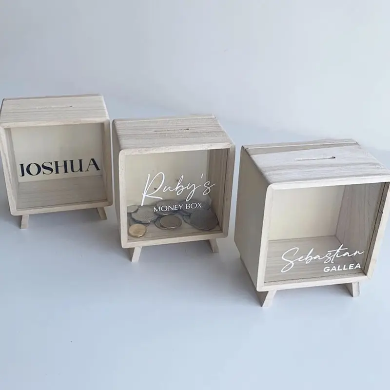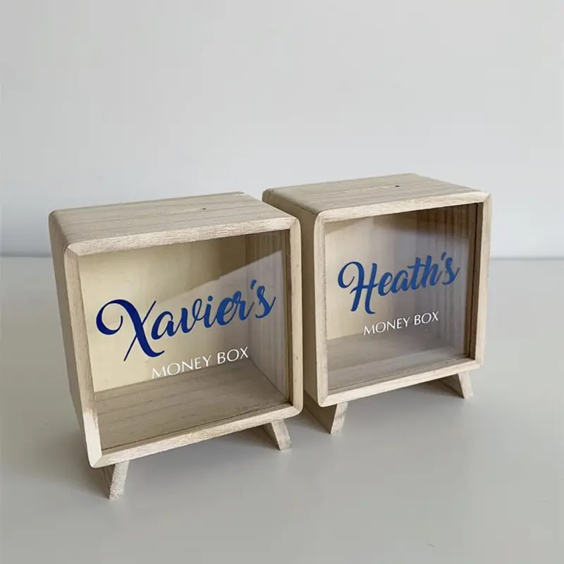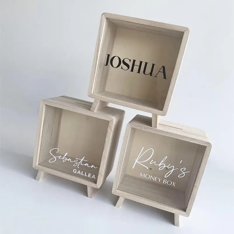 Персонализированные деревянные копилки деревянная коробка для денег настольные украшения бачок для подсчета монет Детские резервуары для хранения экономии банок ремесла25