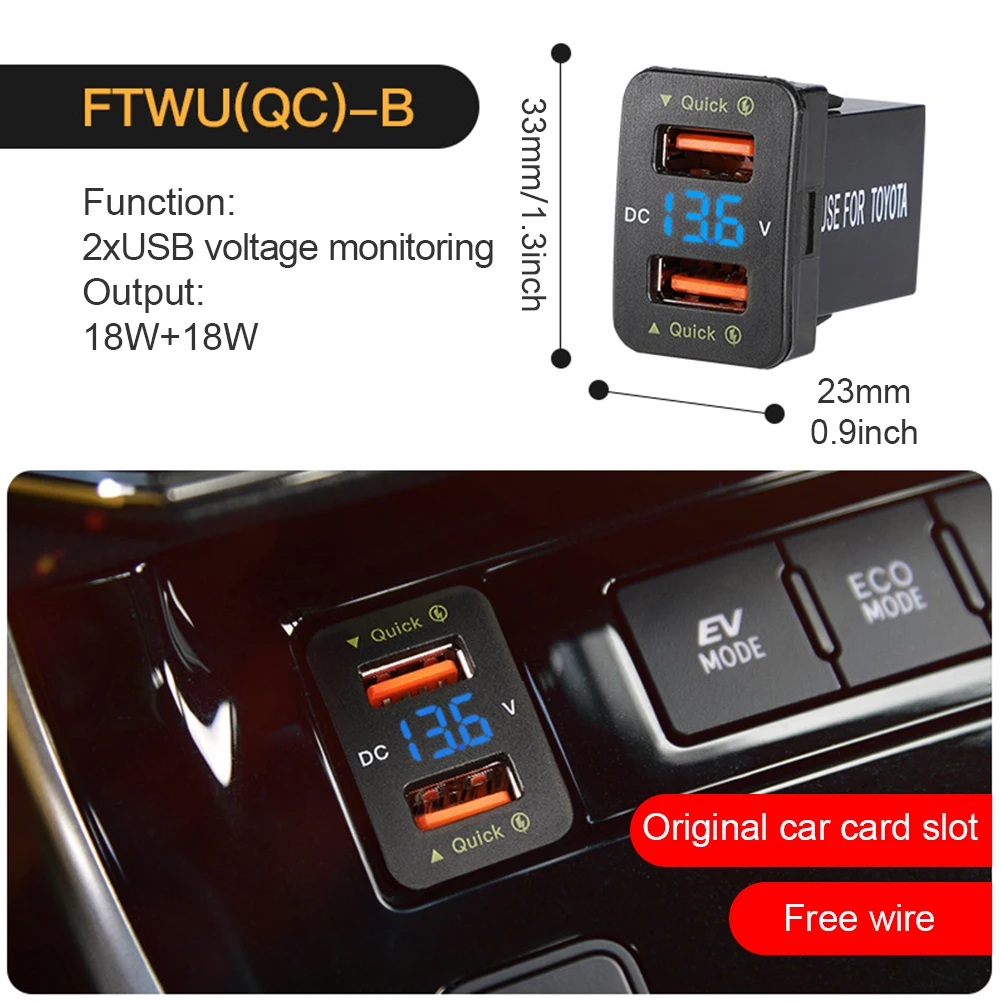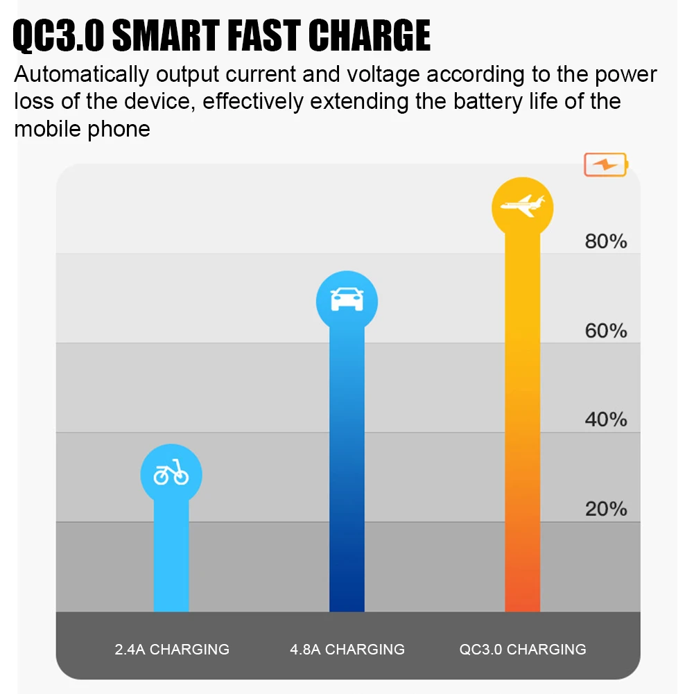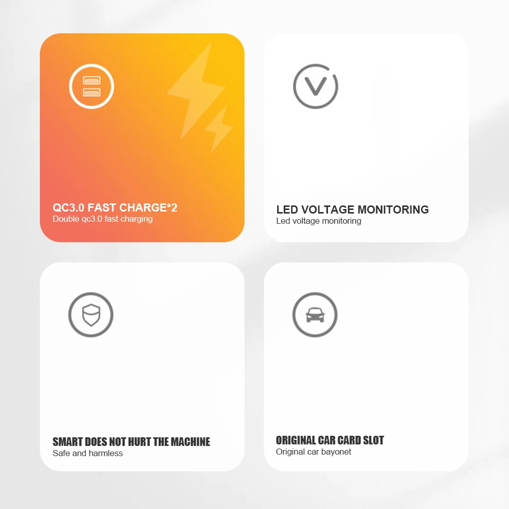 * 1. Быстрая зарядка автомобильного зарядного устройства с максимальным общим выходом 36 Вт, двумя usb-портами.
