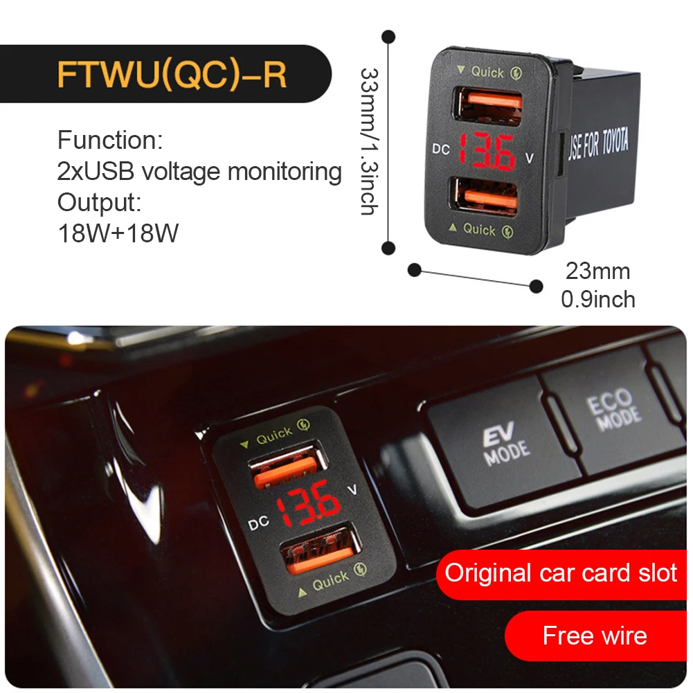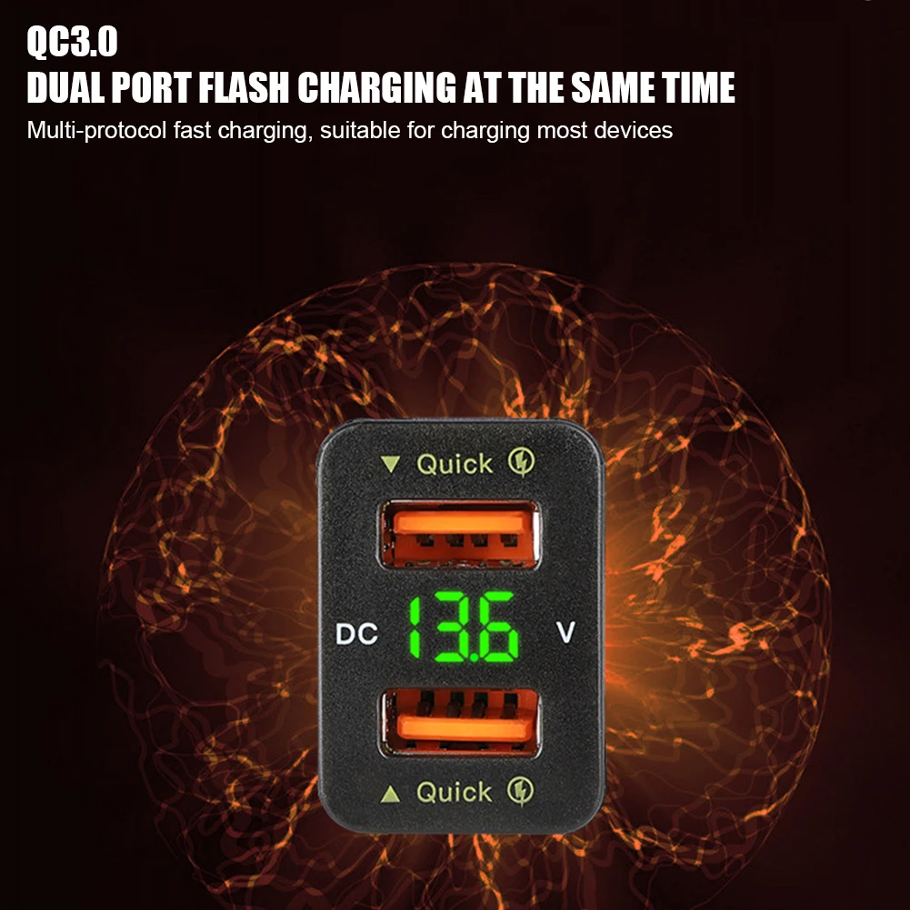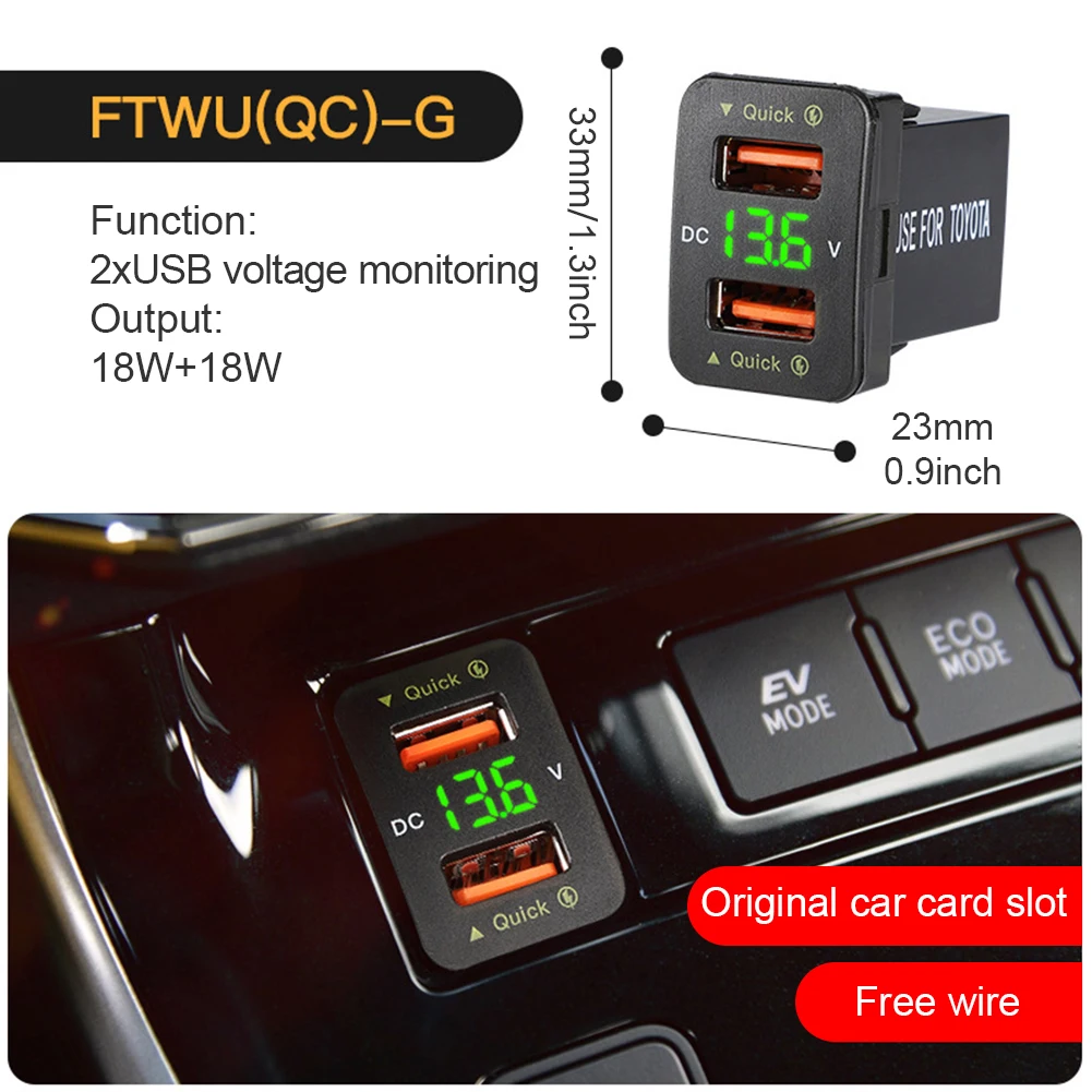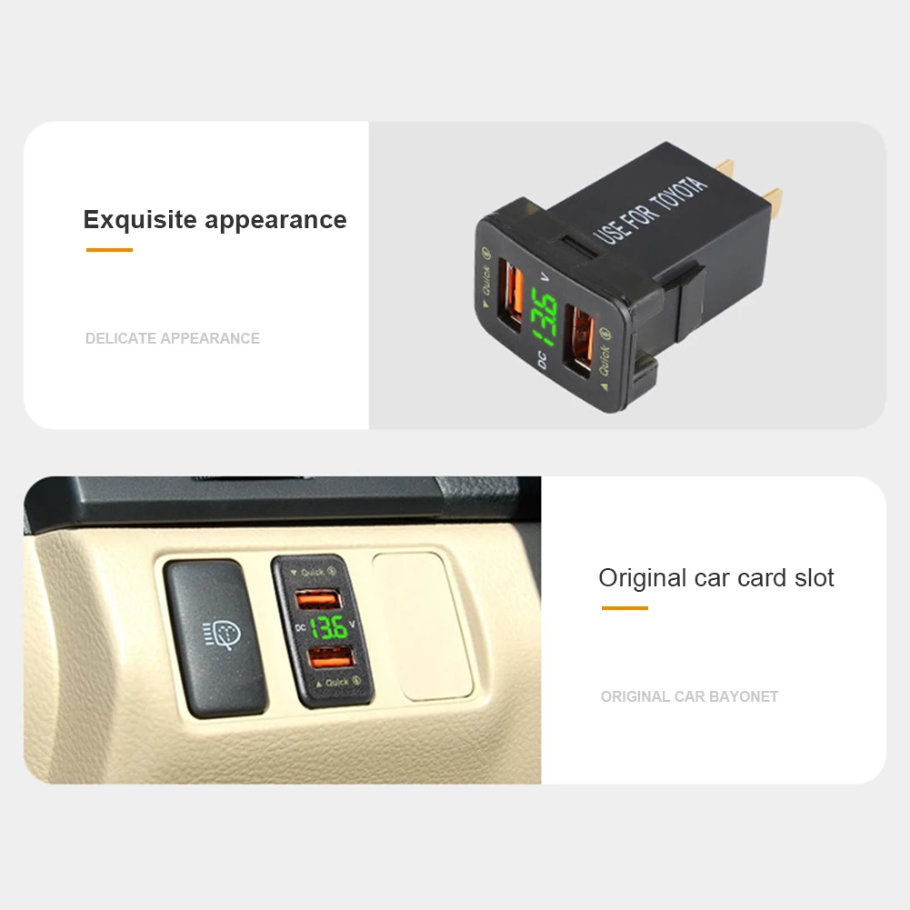* 1. Быстрая зарядка автомобильного зарядного устройства с максимальным общим выходом 36 Вт, двумя usb-портами.