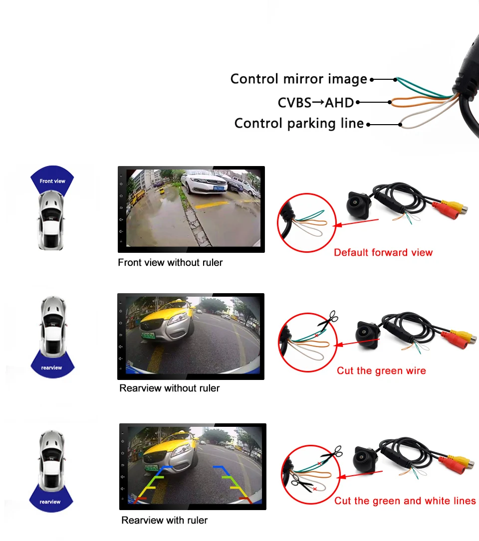 (Примечание --- согласно нашему опыту, некоторые дешевые головки Android имеют настройки для AHD видеосигнала, но правда в том, что они не могут отображать изображение AHD, потому что они не поддерживают AHD на всех. Если да, вы можете только CVBS)