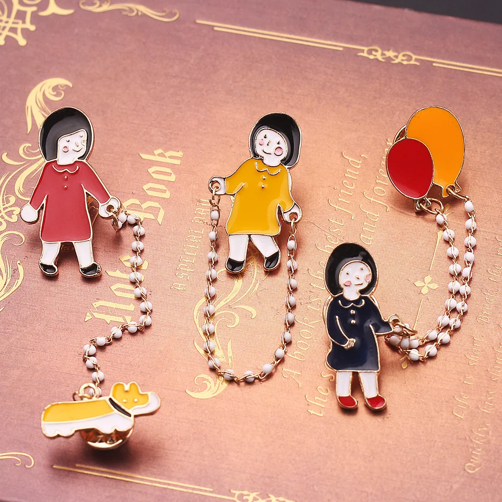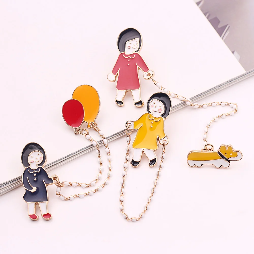 Милая маленькая девочка, ходячая собака, скакалка, шарики, сплав, капельная брошь, японские и корейские популярные ювелирные изделия для девочек