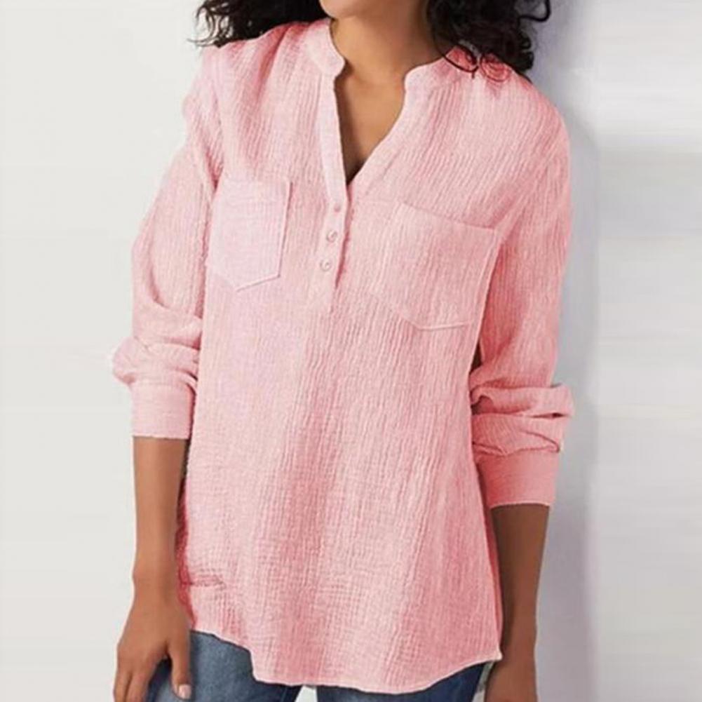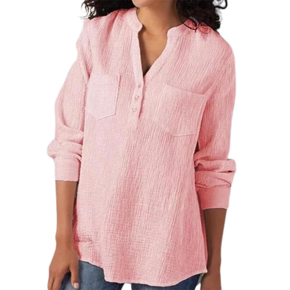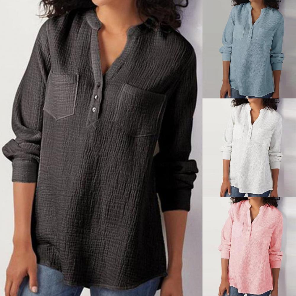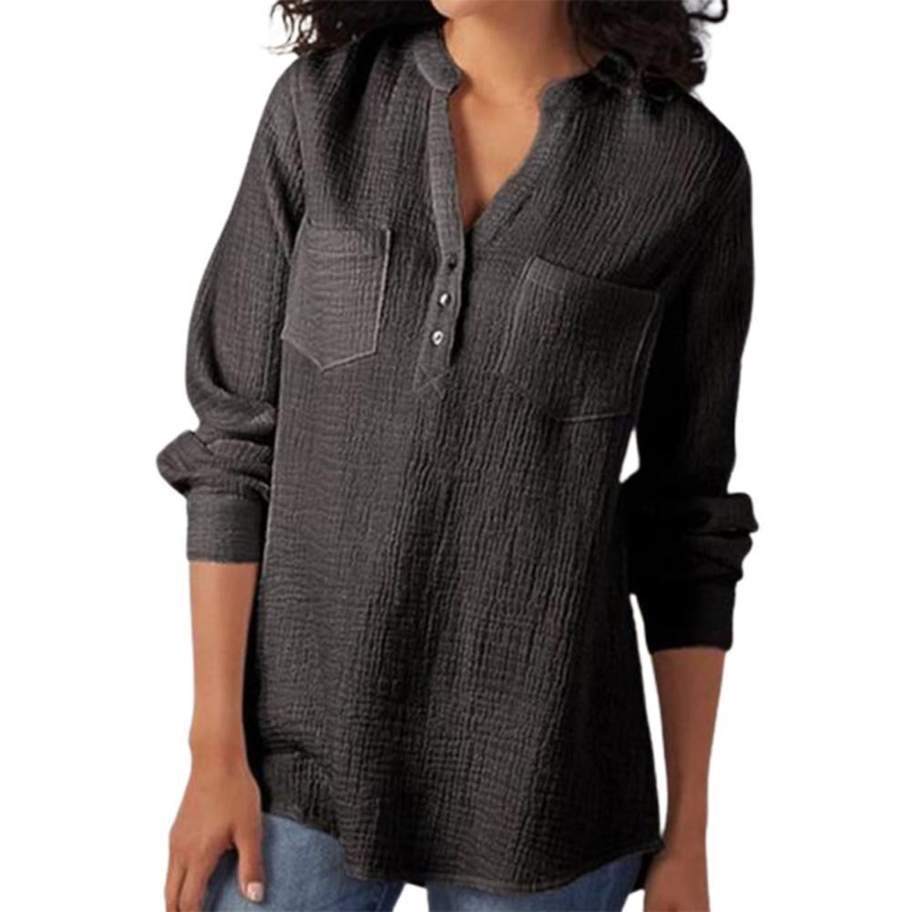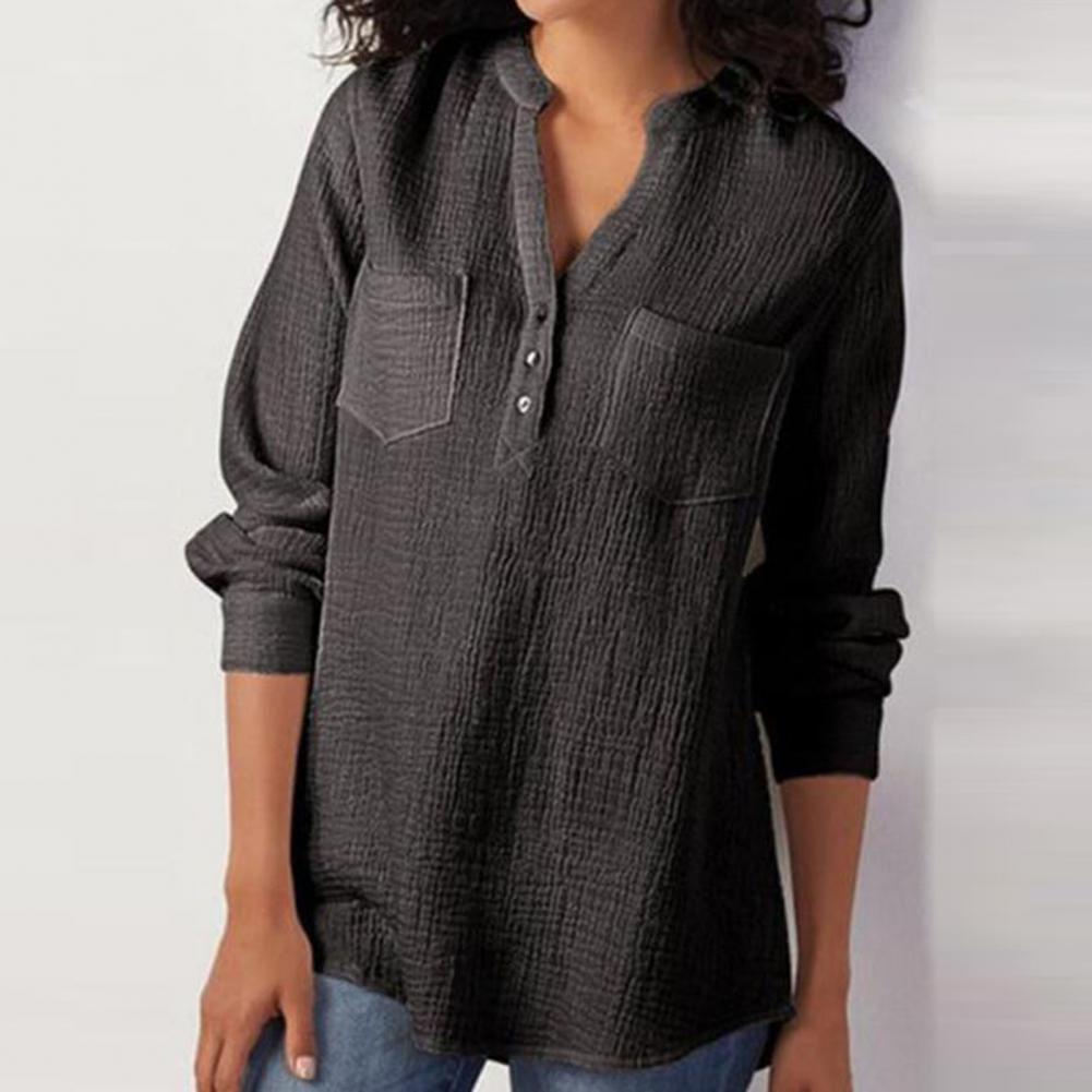 Эта женская рубашка с двойным карманом, v-образным вырезом, длинным рукавом и свободного кроя сделает вас более привлекательной и очаровательной. Он идеально подходит для выхода в свет, на выход, вечерние или похода по магазинам.