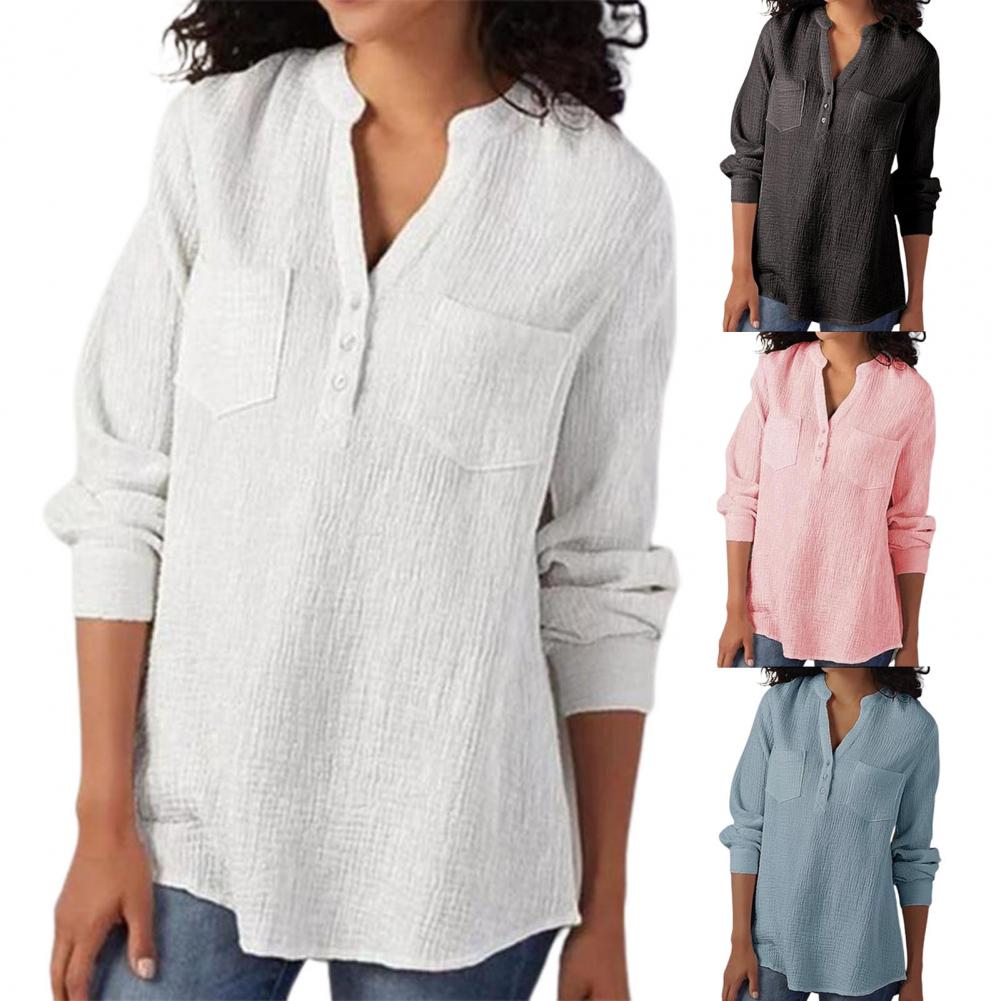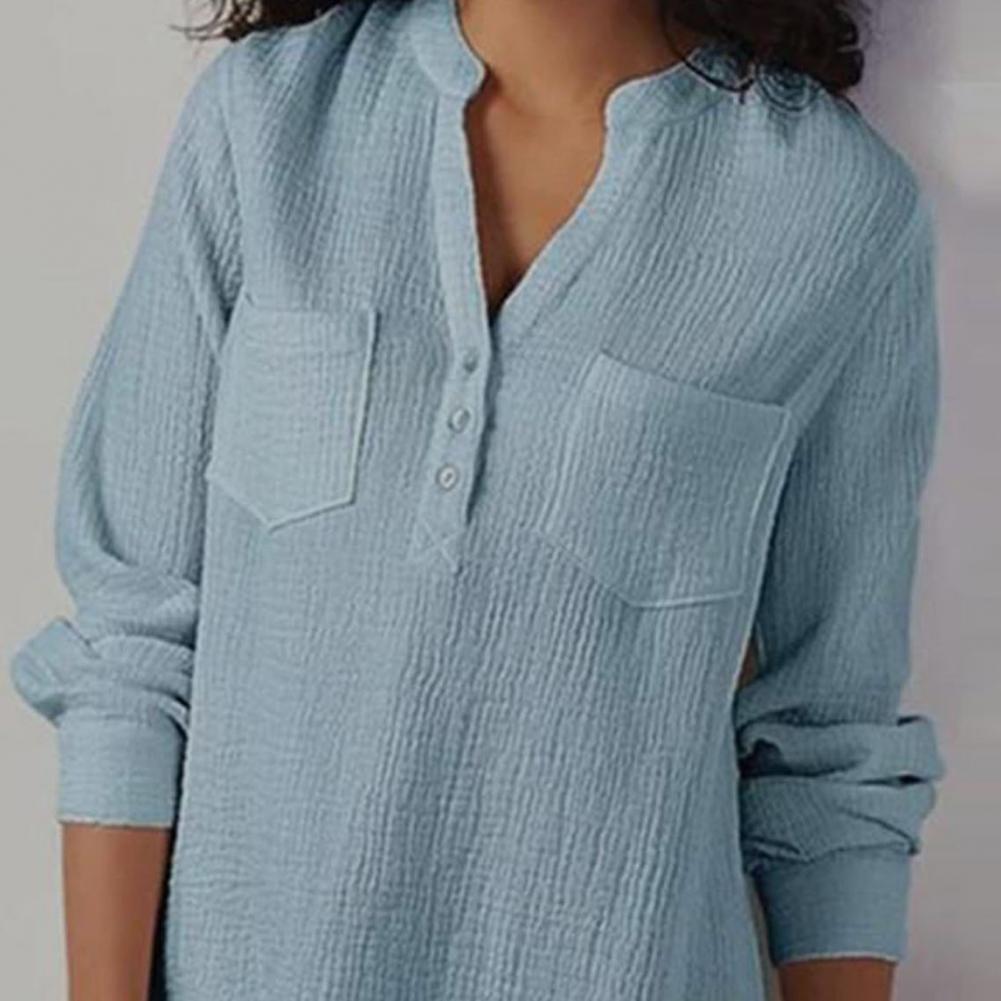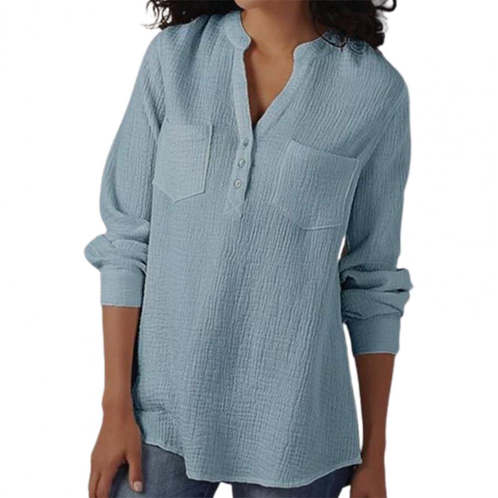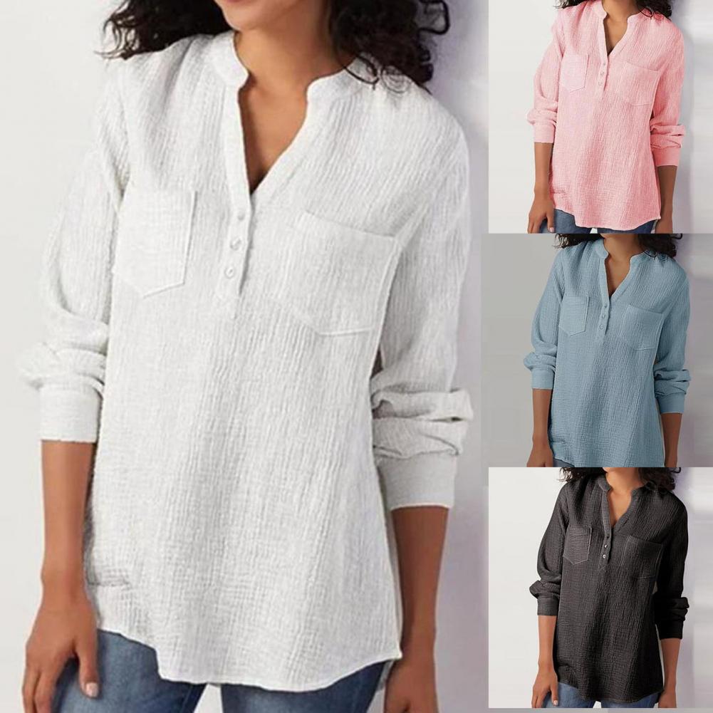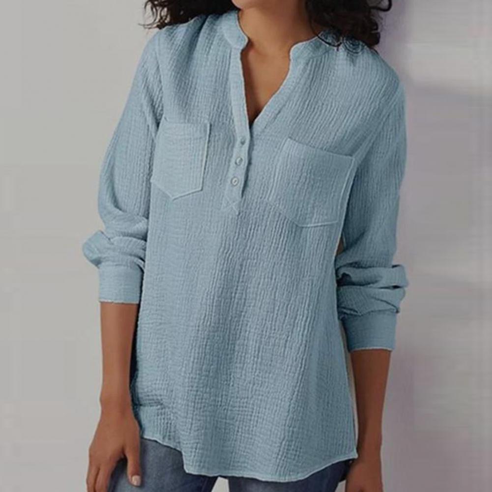 Эта женская рубашка с двойным карманом, v-образным вырезом, длинным рукавом и свободного кроя сделает вас более привлекательной и очаровательной. Он идеально подходит для выхода в свет, на выход, вечерние или похода по магазинам.