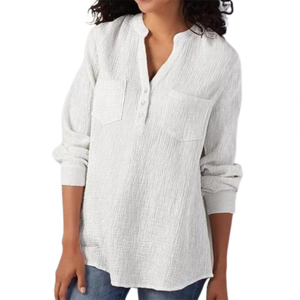 Однотонная женская рубашка свободного кроя, простая и повседневная, поэтому она может сочетаться с другими брюками, такими как джинсы, джинсовые брюки, юбки, платье, кожаные брюки, брюки-карго, И т. д.
