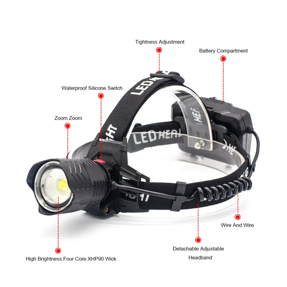 Водонепроницаемый налобный фонарь: супер яркий водонепроницаемый налобный фонарь, большой светодиодный срок службы может достигать 100000 часов.