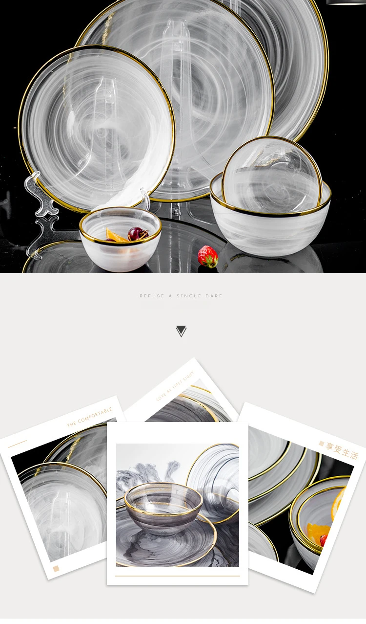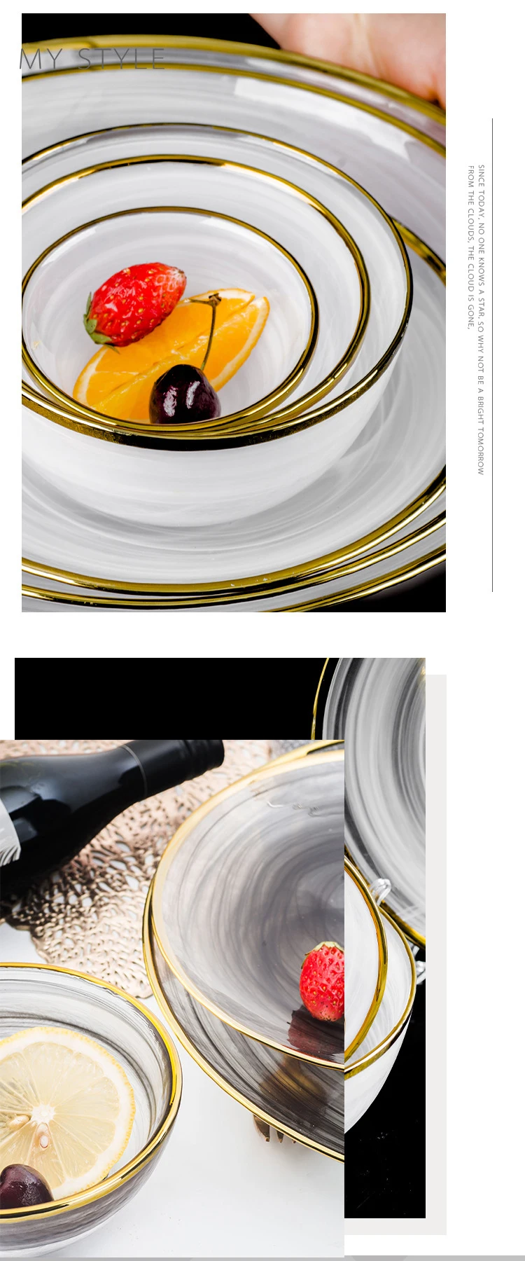 Креативная стеклянная тарелка в Пномпене, домашний роскошный фруктовый поднос, Салатница, тарелка для стейка в западном стиле, кухня, украсить посуду
