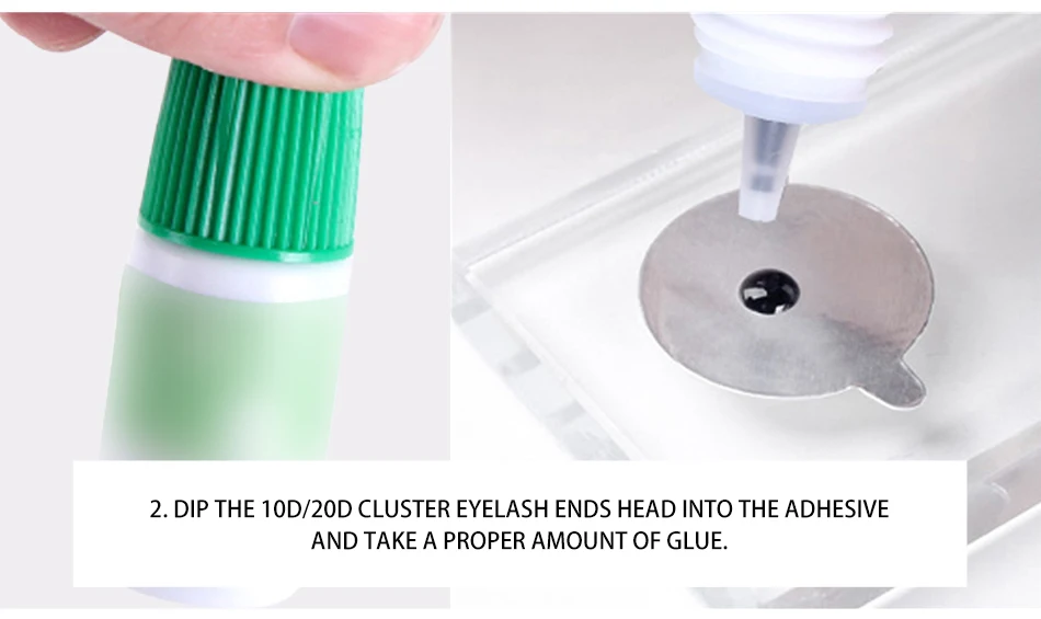 2. Окуните 10d кластер ресниц в клей и возьмите необходимое количество клея.