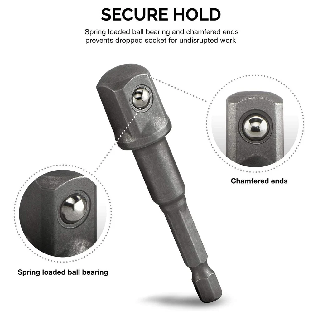 Подходит для различных потребностей: этот набор адаптеров для отверток содержит 1/2 дюйма, 3/8 дюйма и 1/4 дюйма адаптеры для розеток. Вы можете использовать их в зависимости от различных ситуаций.