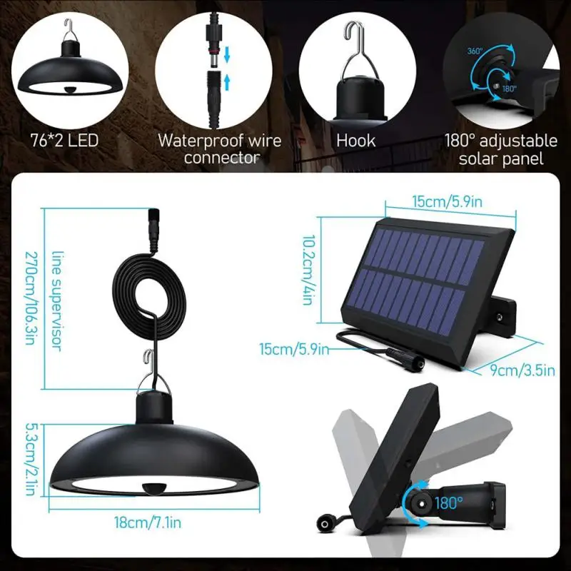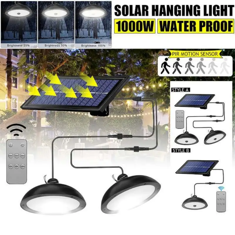 【Регулируемый свет и три режима функции 】 2 подвесных светильника могут быть отдельно или вместе включены. Простой в использовании, управляемый дистанционным управлением, сначала Включите кнопку на задней панели солнечной батареи, затем зарядите солнечную панель под прямой светильник, наконец-то управлять светильник с пультом дистанционного управления для включения/выключения, белый светильник или теплый светильник с 3 уровня яркости (25%/50%/100%); Три светильник ing режим может быть комплект: MODE1, MODE2, MODE3.