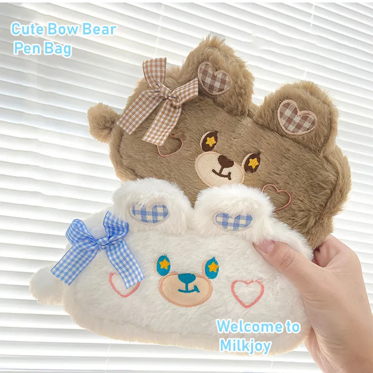 Милкджой кавайи пушистый медведь большой емкости Карандаш Чехол милый мультфильм Карандаш Чехол сумка