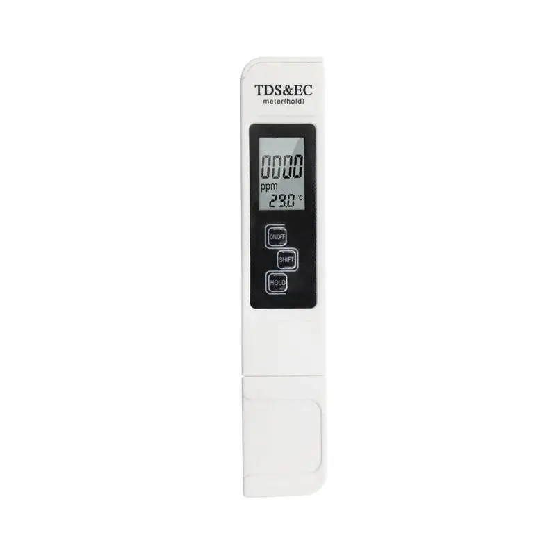 Предоставляя точные и надежные показания теста: 3-в-1 цифровой измерительный прибор TDS может точно измерить TDS (всего растворенные вещества), EC (проводимость) и температуры. Профессиональный, точный и точный трехв-1 TDS, EC и измеритель температуры воды. Прибор TDS имеет автоматическую компенсацию температуры в режиме измерения. При отсутствии работы в течение 9 минут счетчик автоматически отключится. Экономия энергии и увеличение срока службы батареи