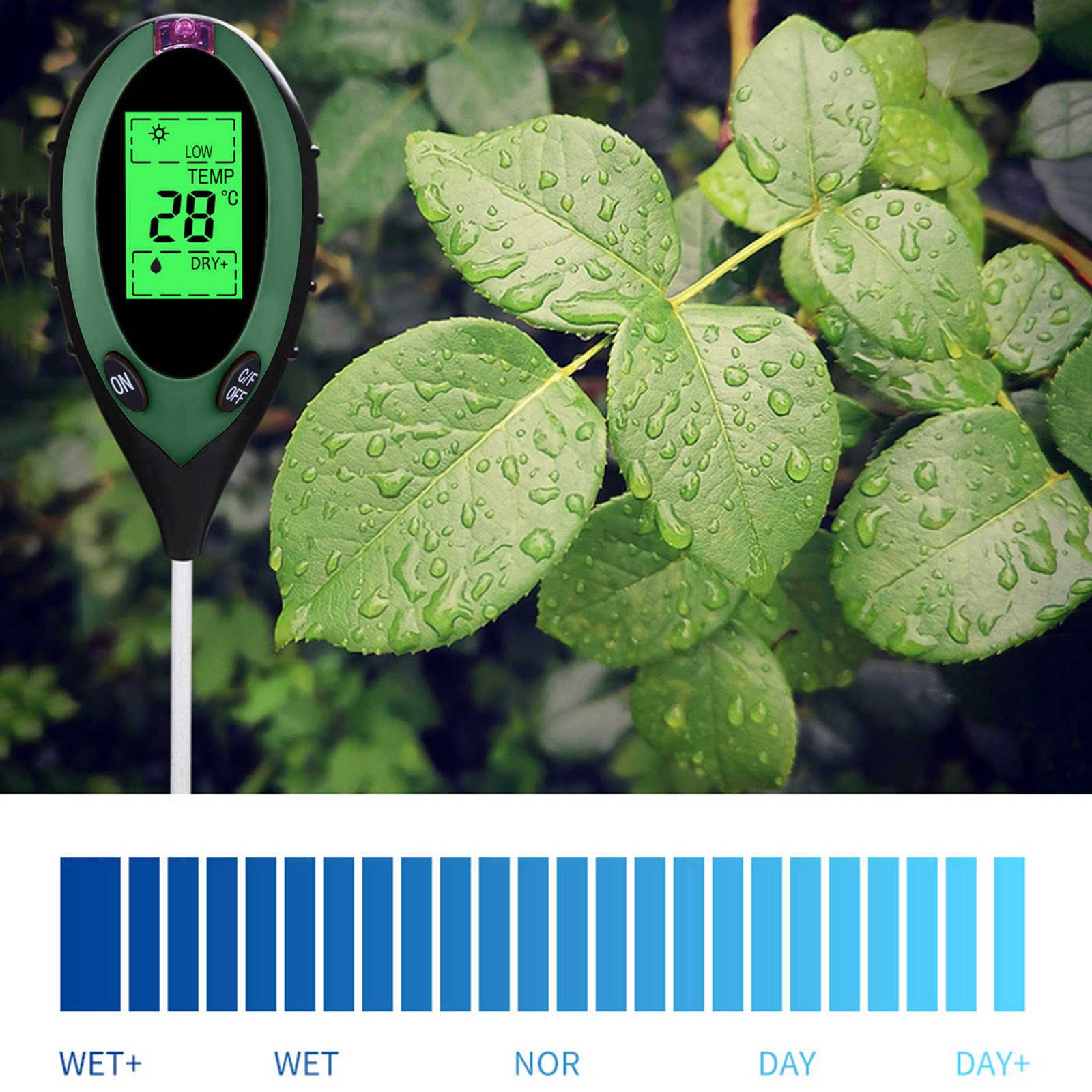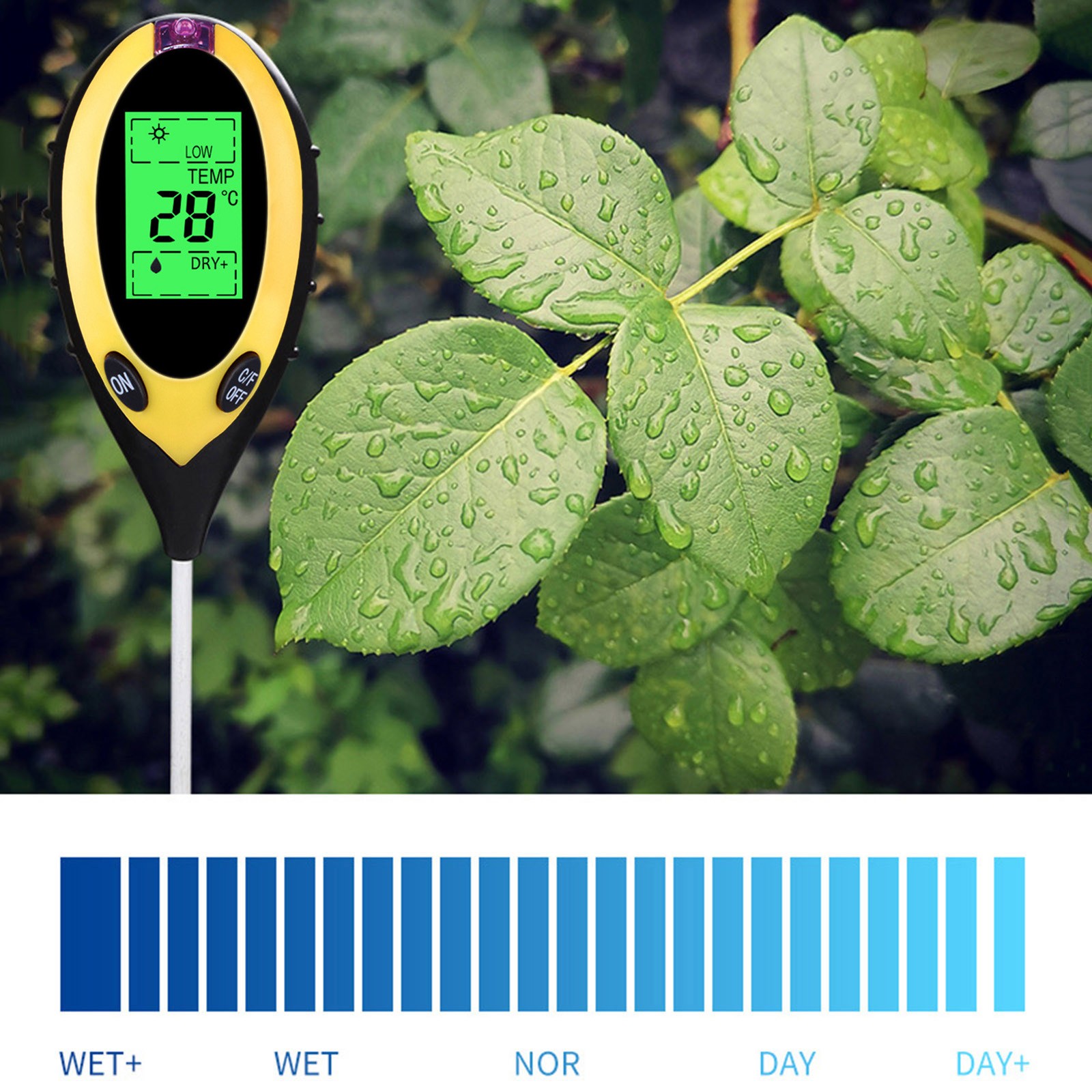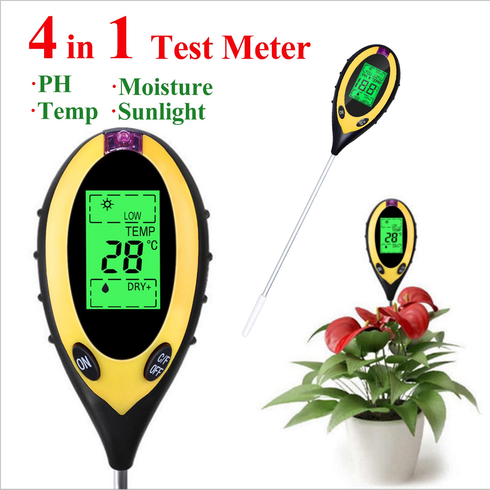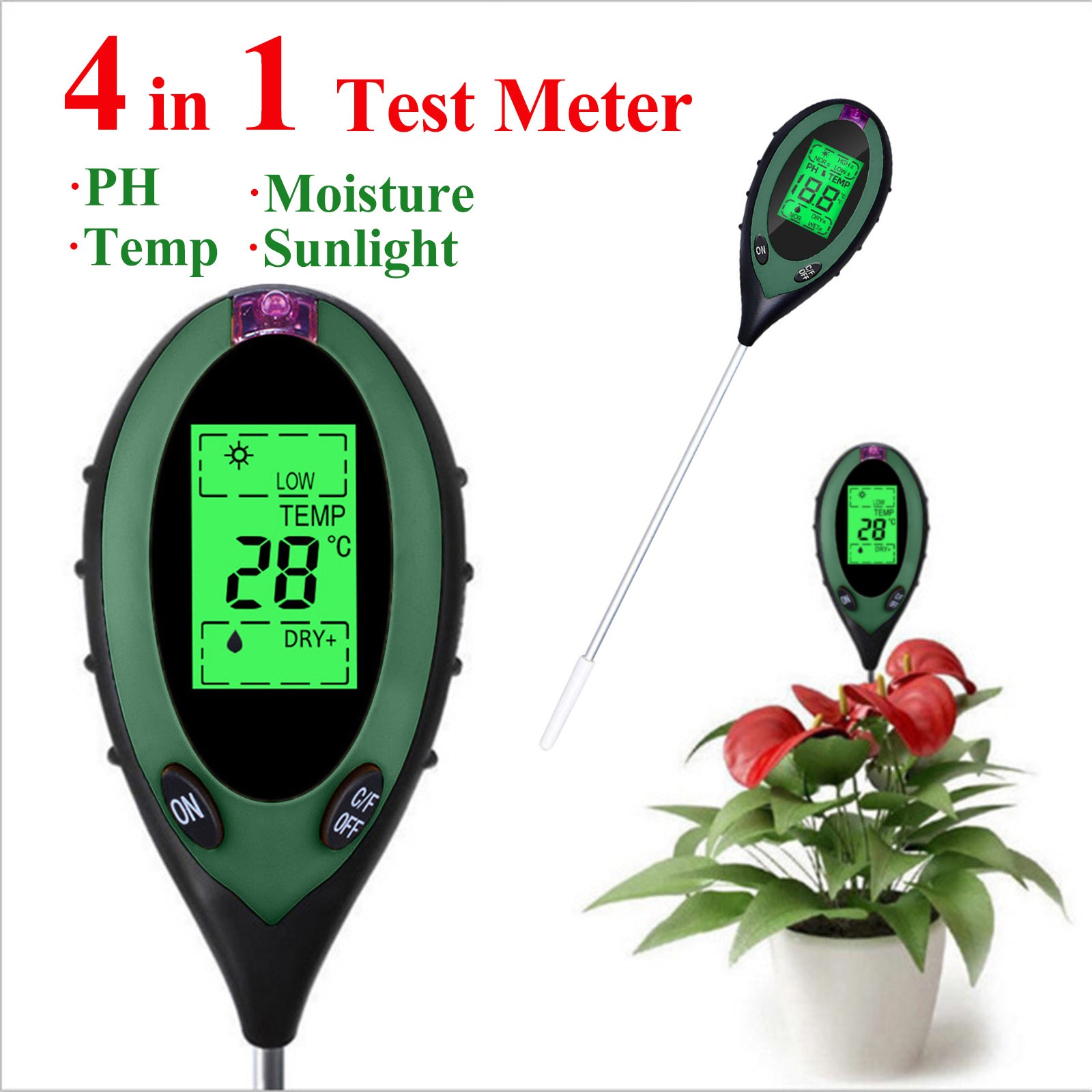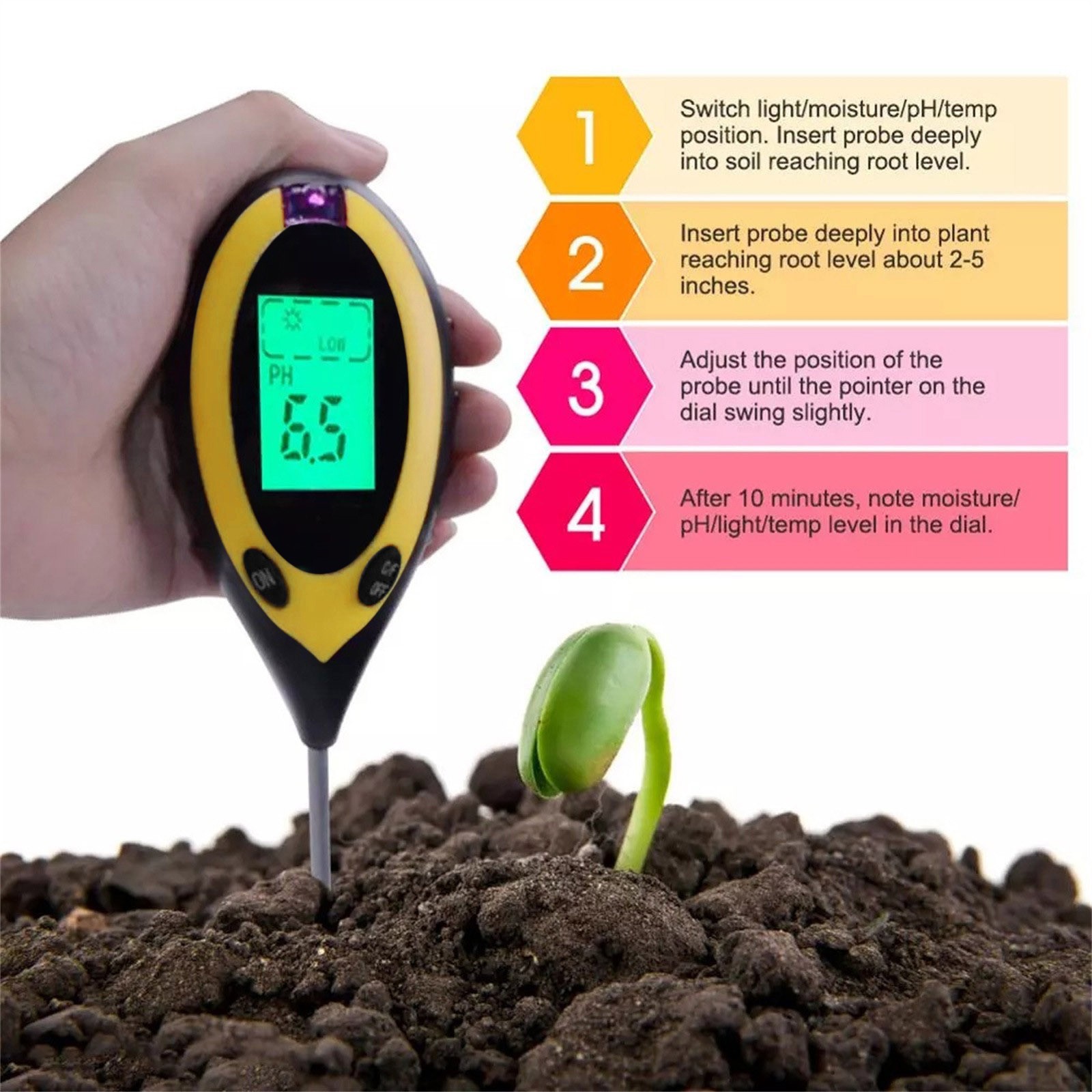 Вы устали от того, что ваши растения умерли? Надоело быть окруженным вогнутыми и коричневыми образцами? Если да, то проблема может быть с вашей почвы, и т. д., все, что вам нужно, это «3 в 1»Влажность, PH и светильник с простой шкала считывания. Вашим растениям никогда не нужно бояться, что вы снова будете страдать от них с помощью этого простого в использовании и научно точного измерительного устройства.