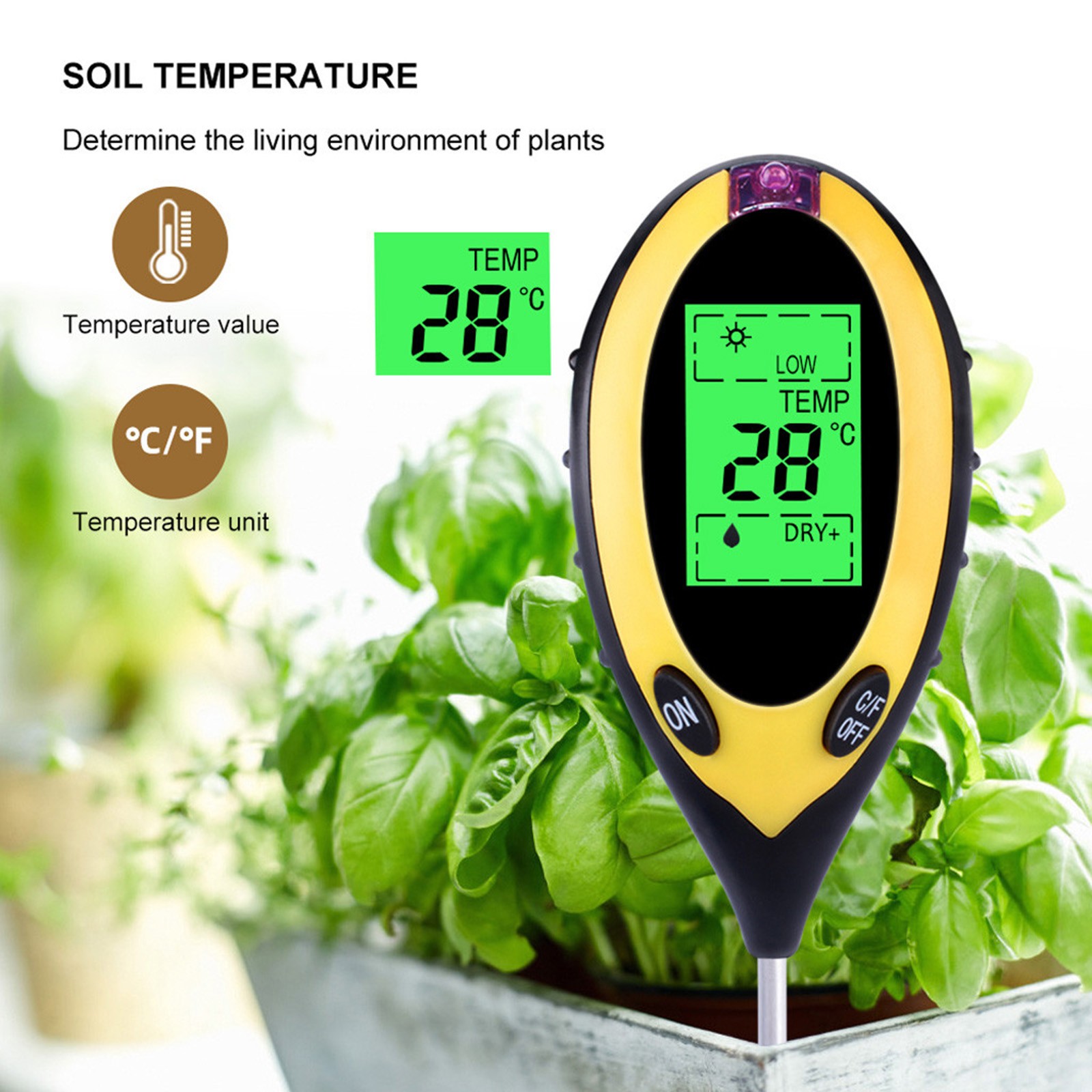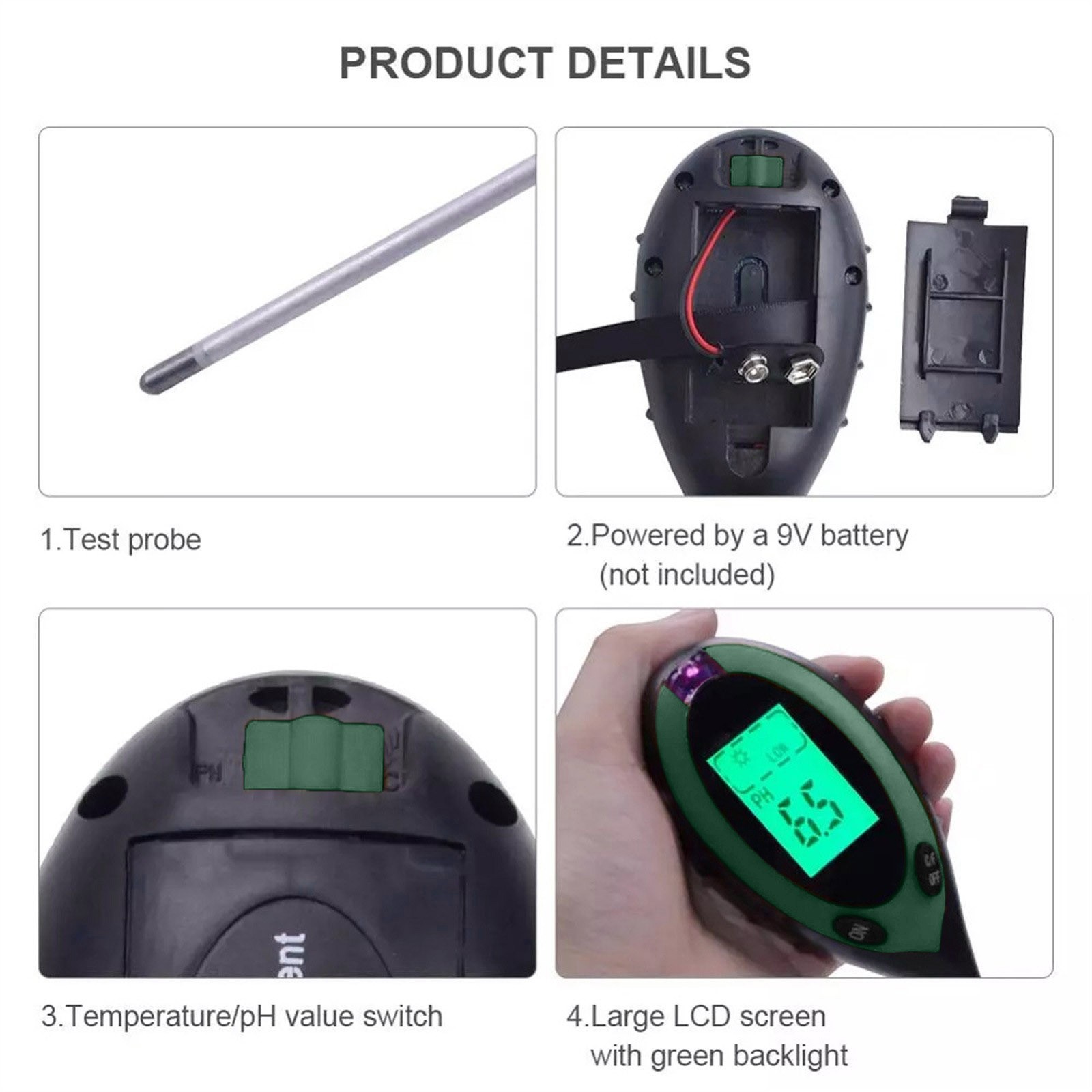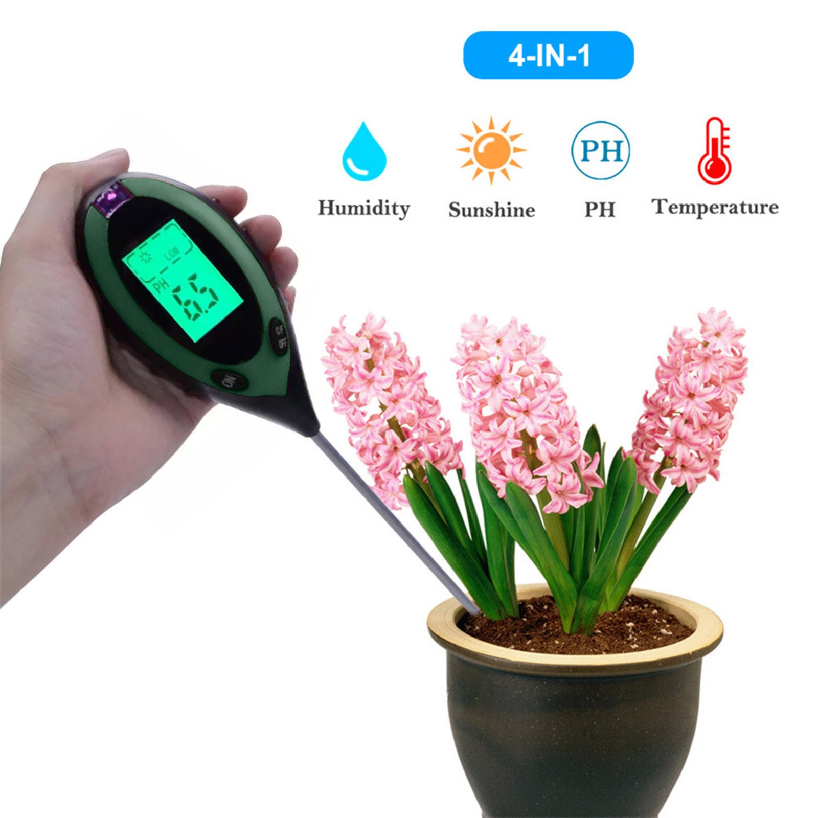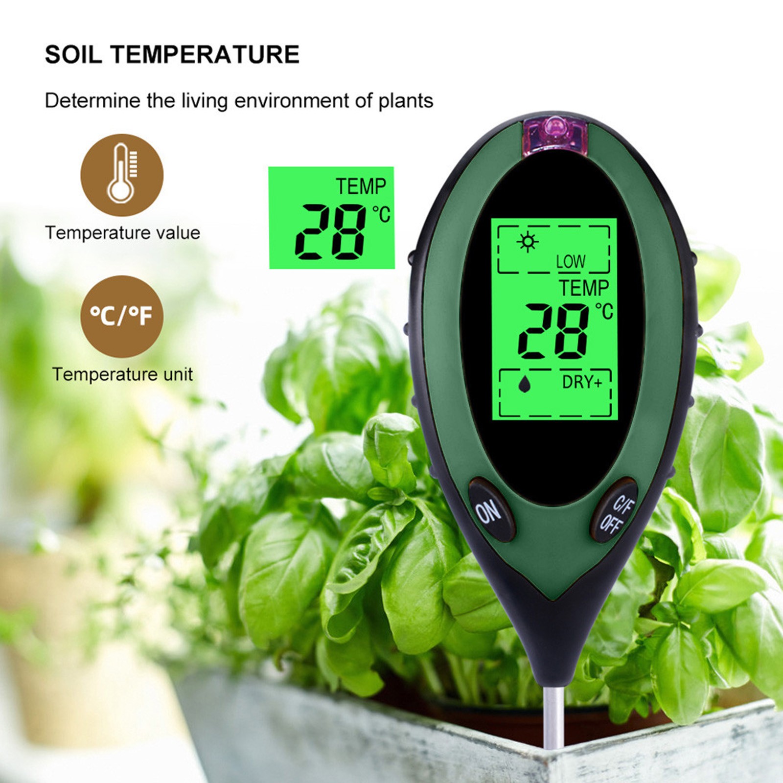 4 функции в одном компактном измерителе-Определение значения температуры, определение значения влажности, светильник, определение значения pH