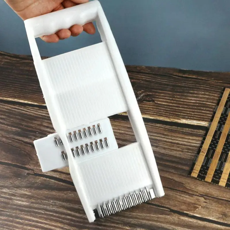 Овощерезка может легко нарезать различные фрукты и овощи, а также можно разрезать. Например, лук, огурцы, морковь, картофель, имбирь, чеснок и т. Д.