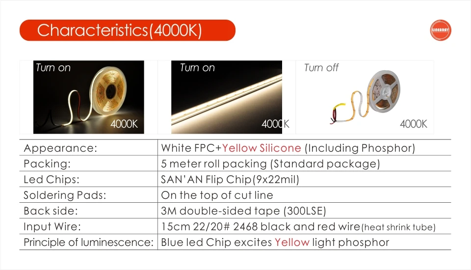 > Этот продукт соответствует стандарту LM80 светодиодный, предназначен для работы с постоянным напряжением, использует флип-чип и процесс интеграции COB;