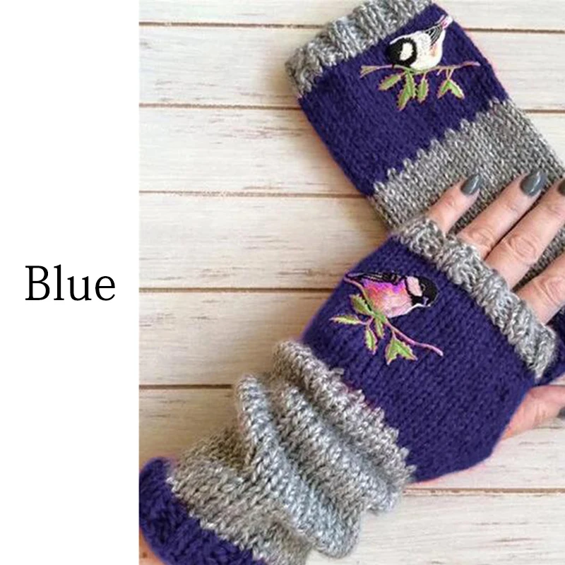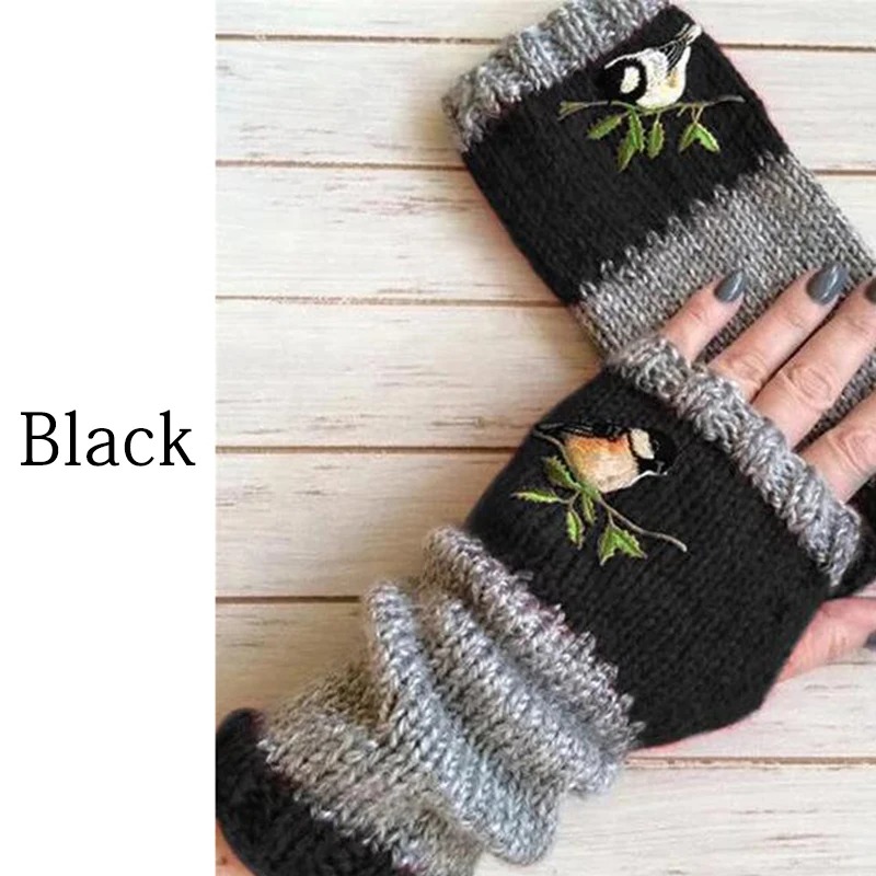 Модные женские вязаные зимние перчатки без пальцев с вышивкой мягкие теплые шерстяные гибкие перчатки для рук теплые дешевые
